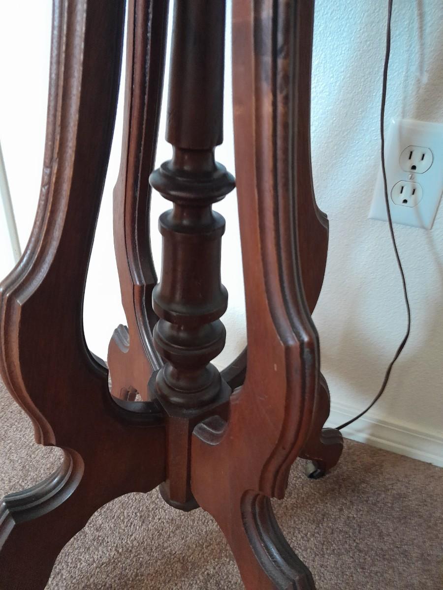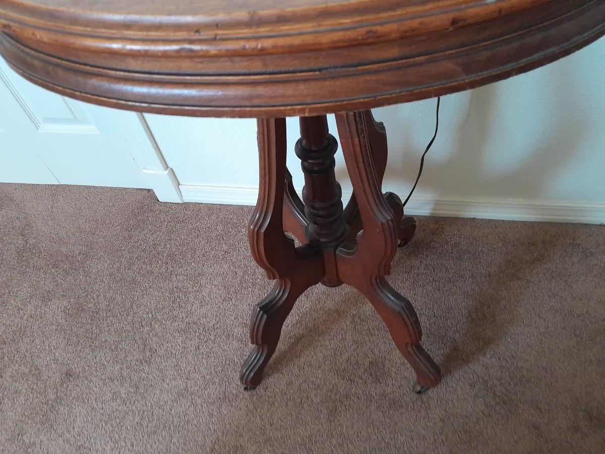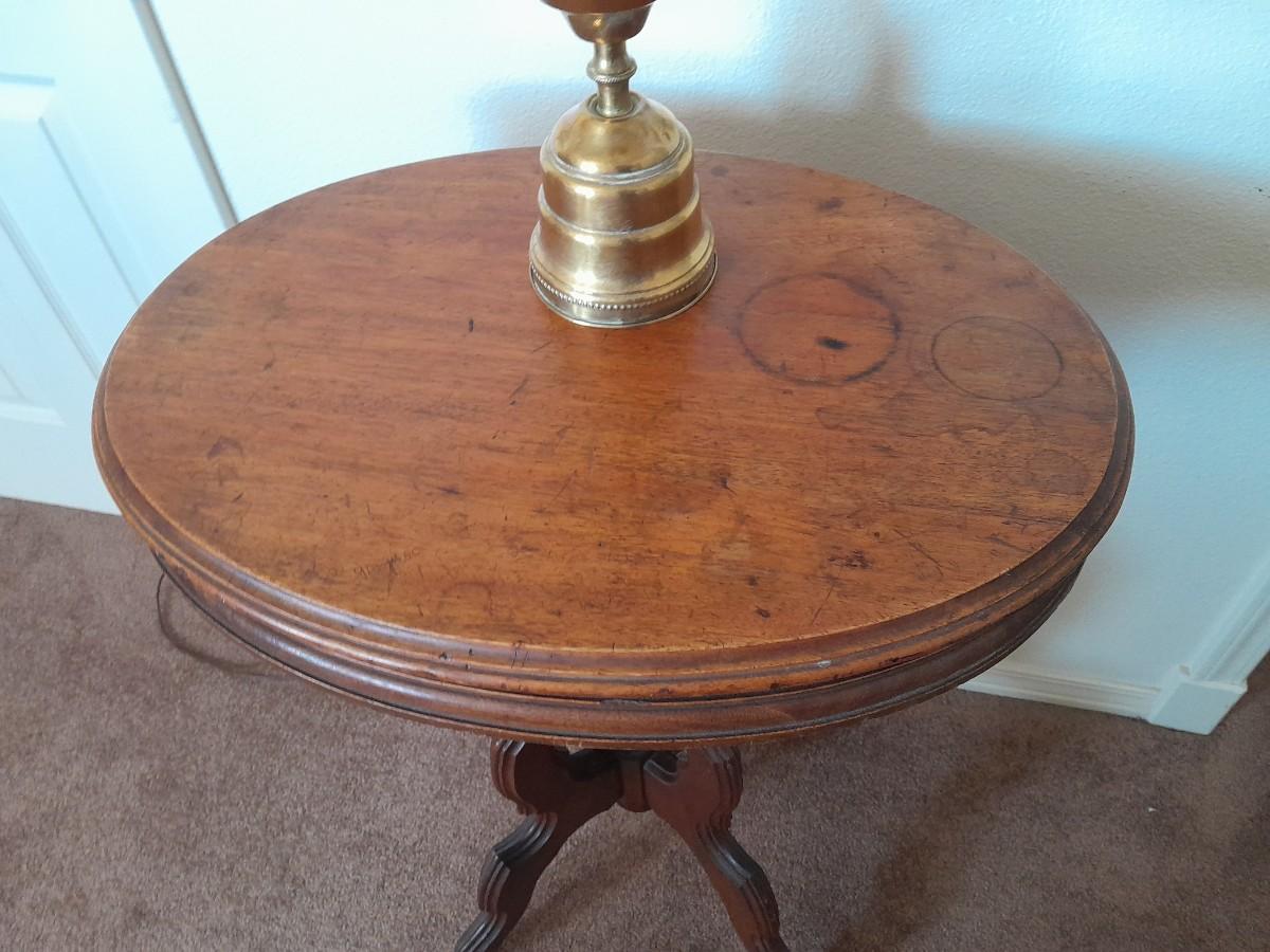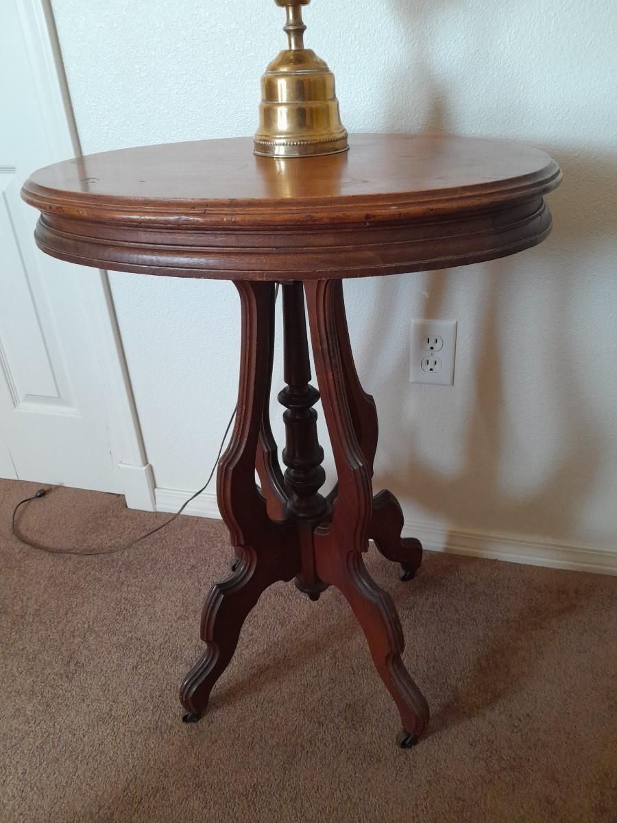 ANTIQUE TABLE WITH BRASS LAMP