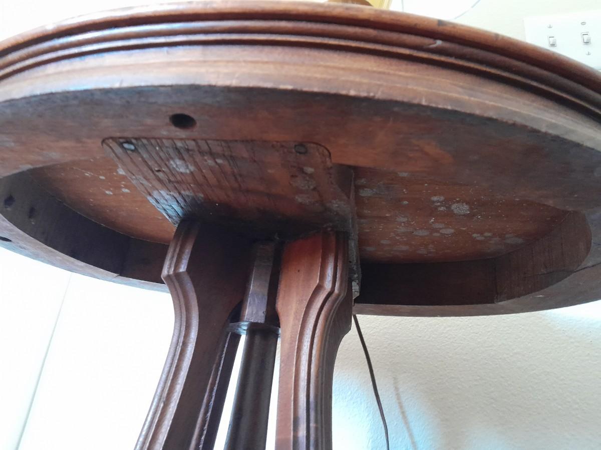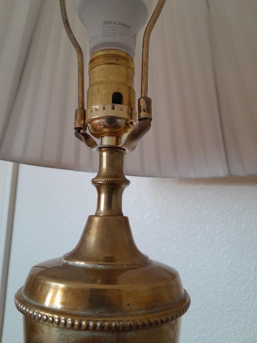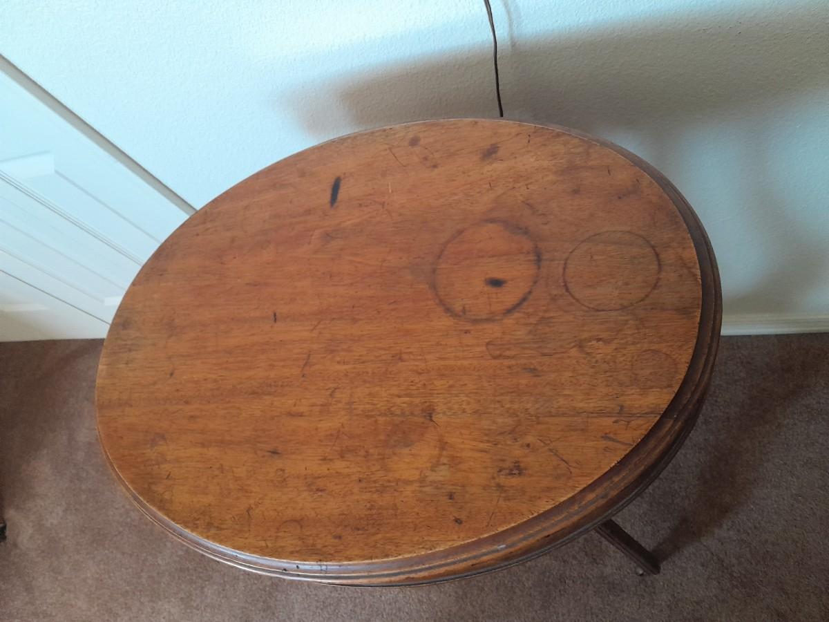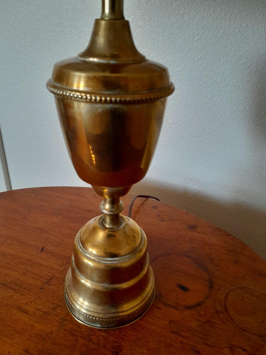 ANTIQUE TABLE WITH BRASS LAMP