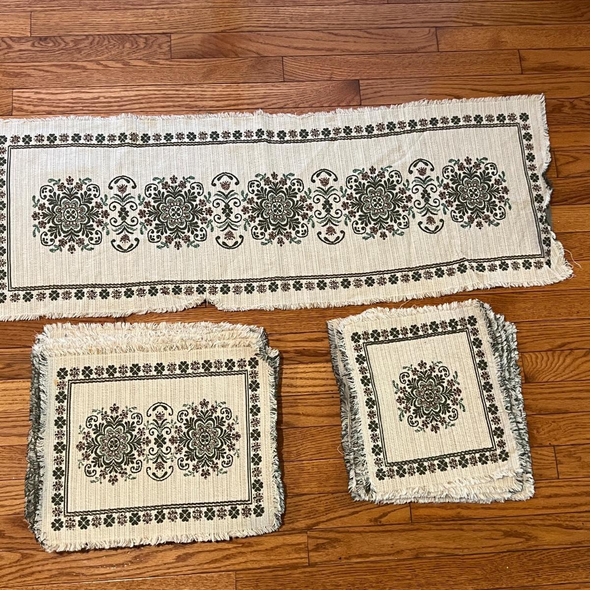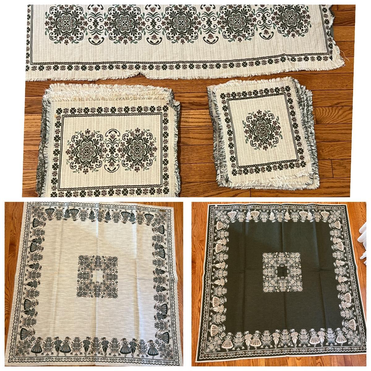 Vintage Austrian Halltex Woven Reversible Folk Lot - Tablecloths, Runners, Napkins, Placemats
