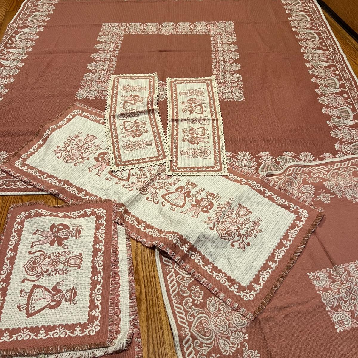 Vintage Austrian Halltex Woven Reversible Folk Lot - Tablecloths, Runners, Placemats