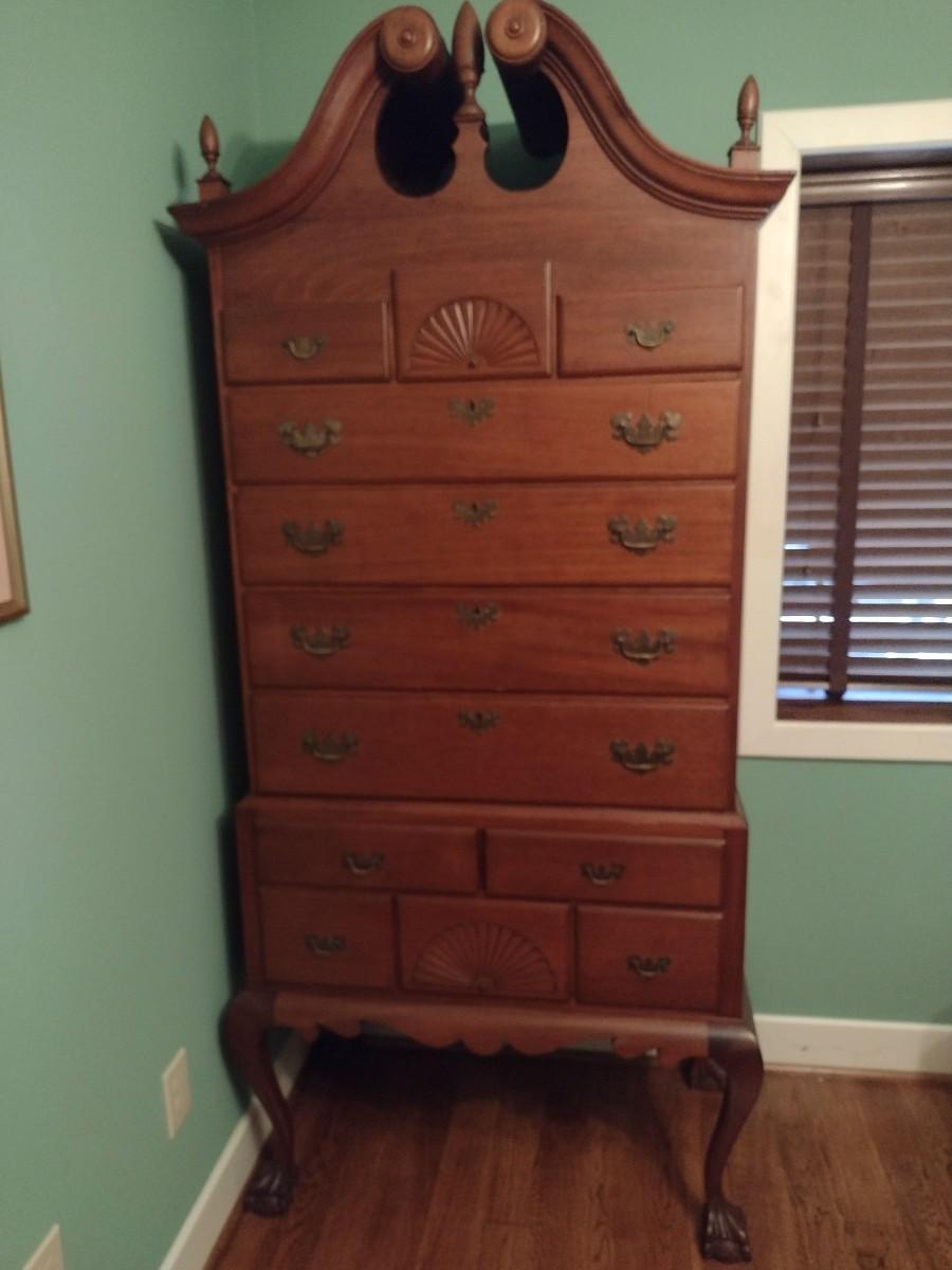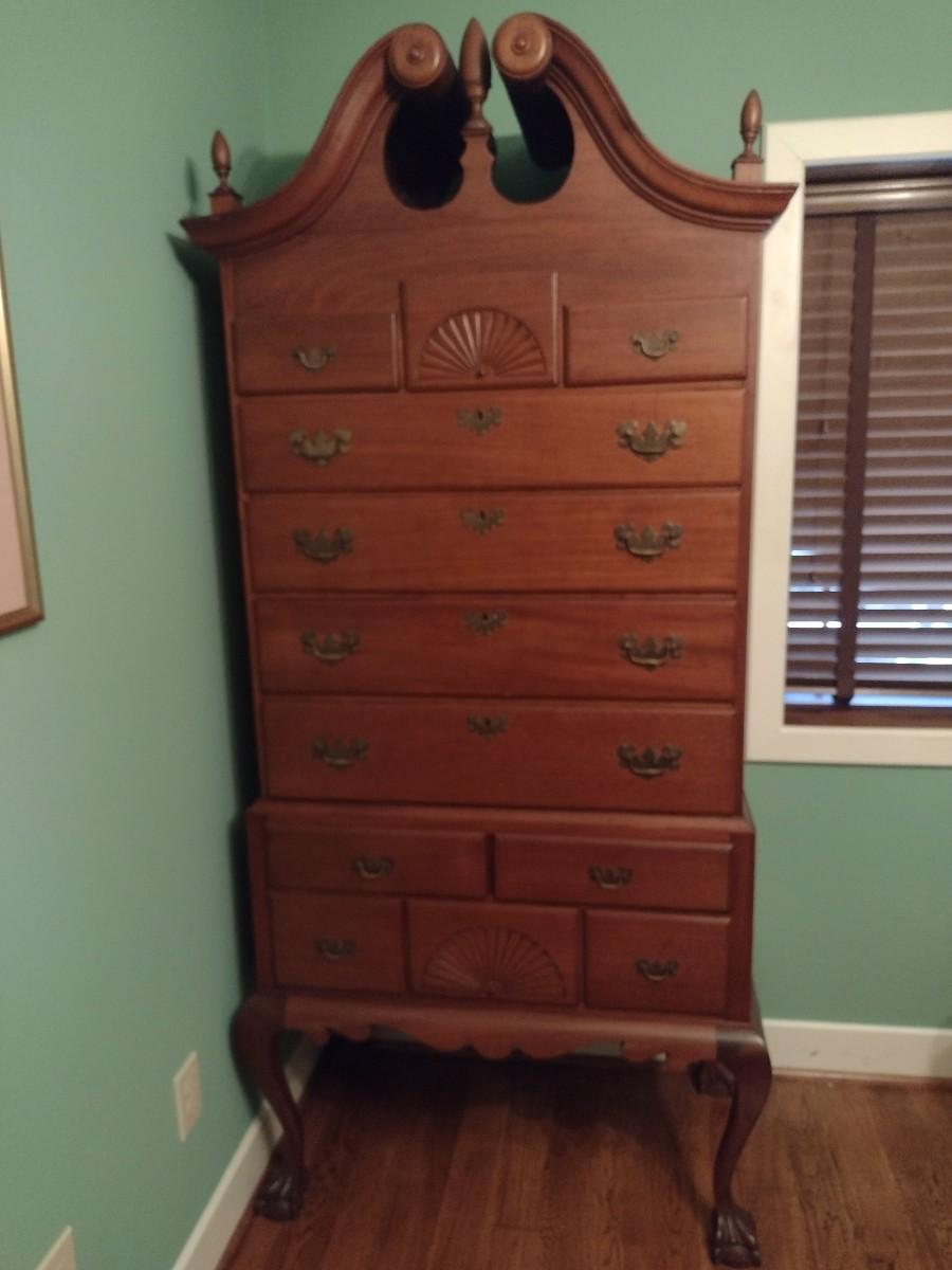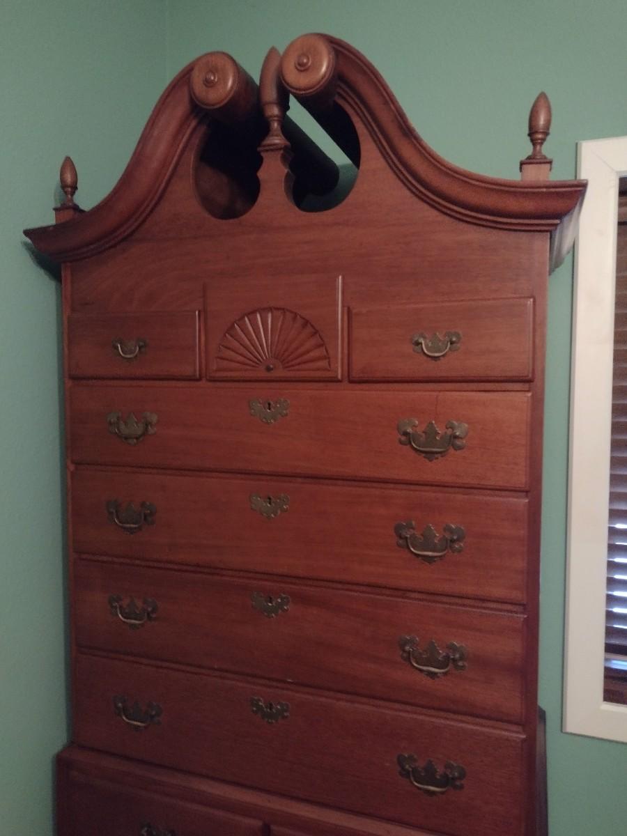 Vintage Tall Boy Dresser Two Piece with Scrolled Top