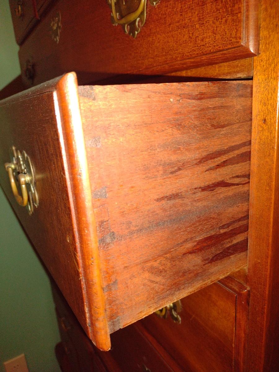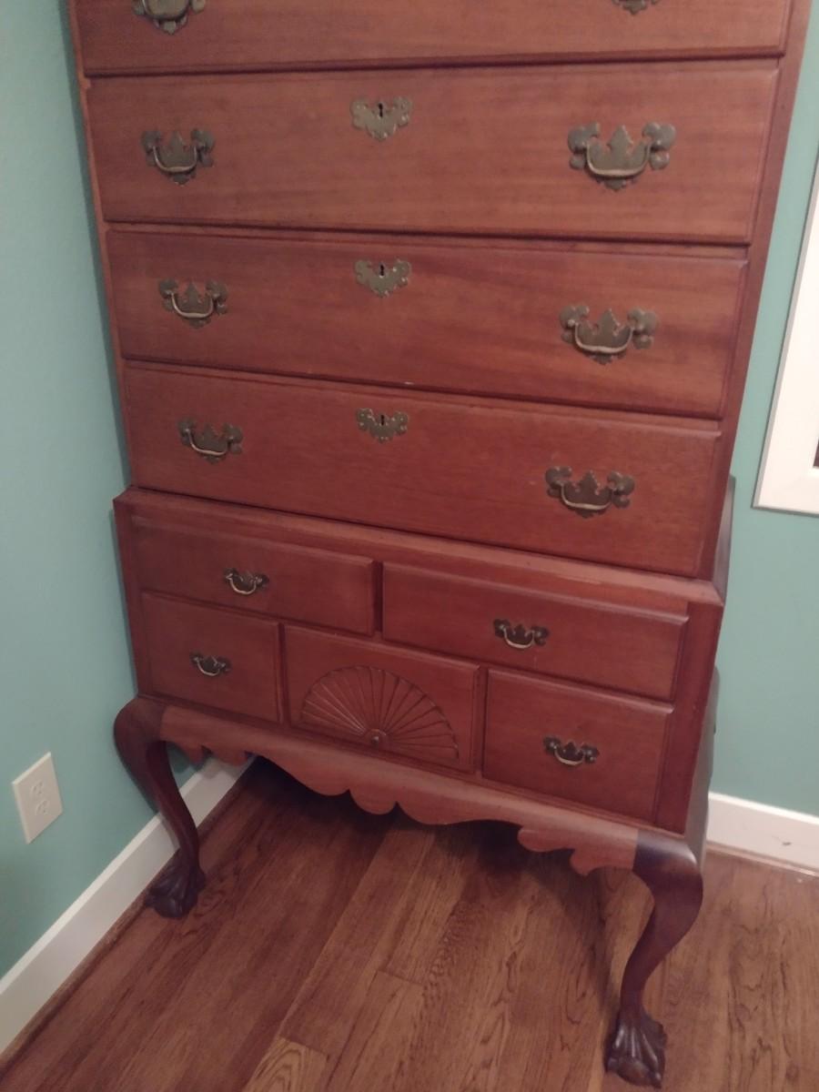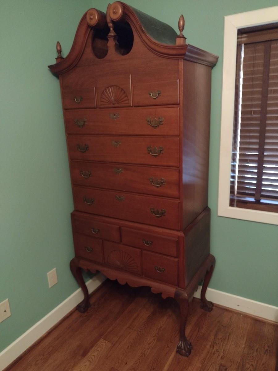 Vintage Tall Boy Dresser Two Piece with Scrolled Top