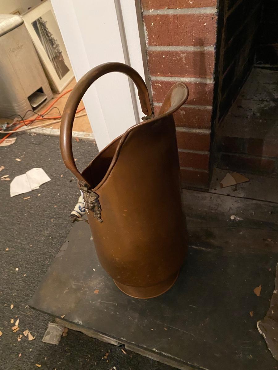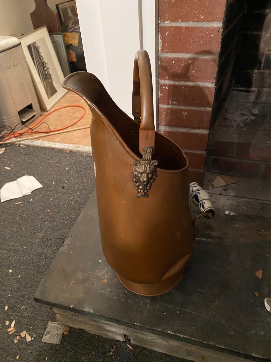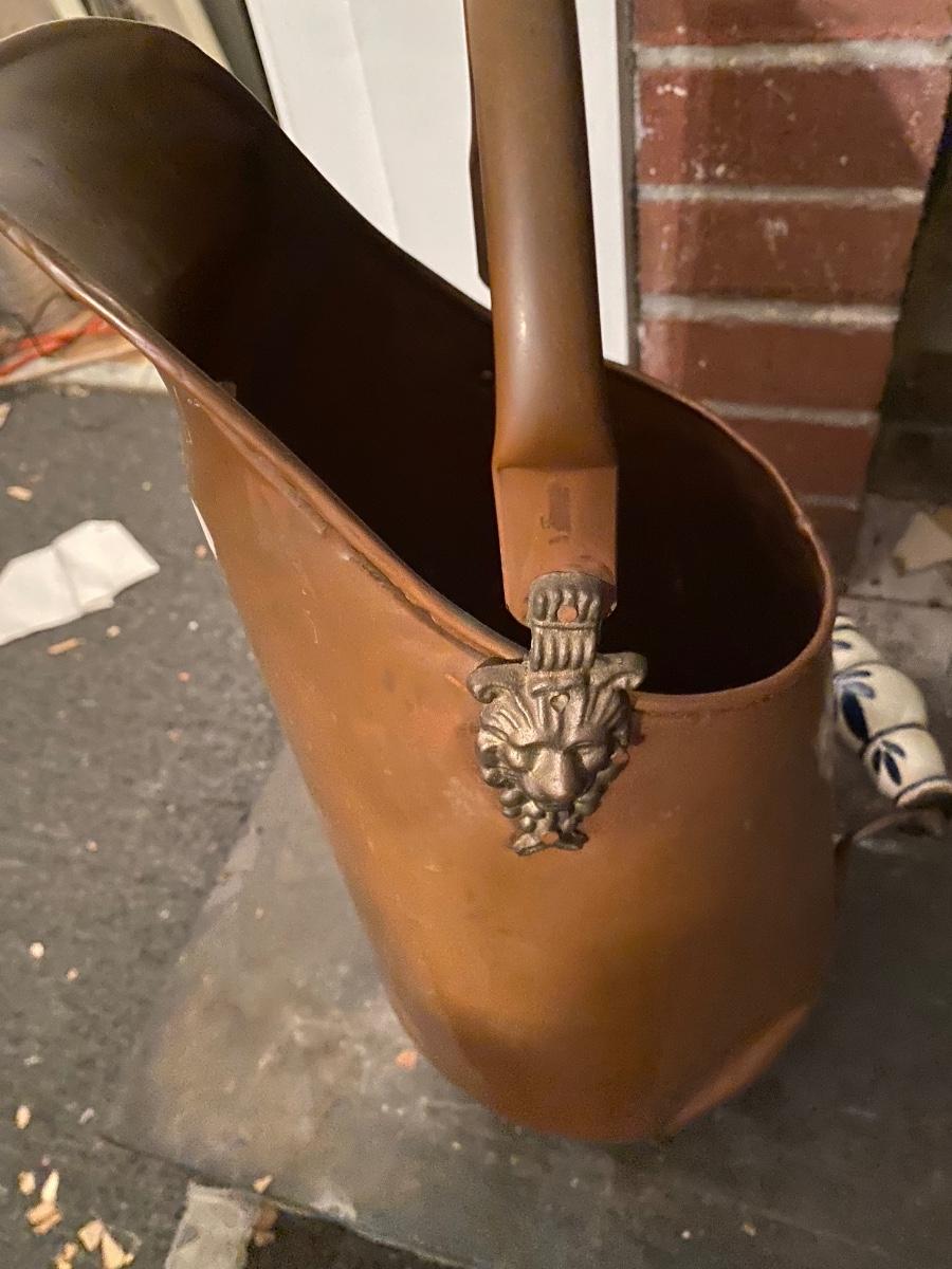 Vintage Tall Copper Pitcher Jug Lions Head Bucket Delph Handle 19"