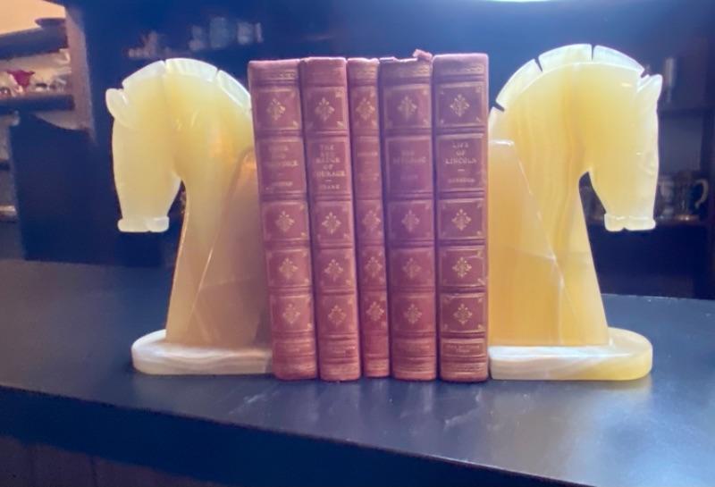 Vintage tall Luminous Marble Trojan Horse Book Ends