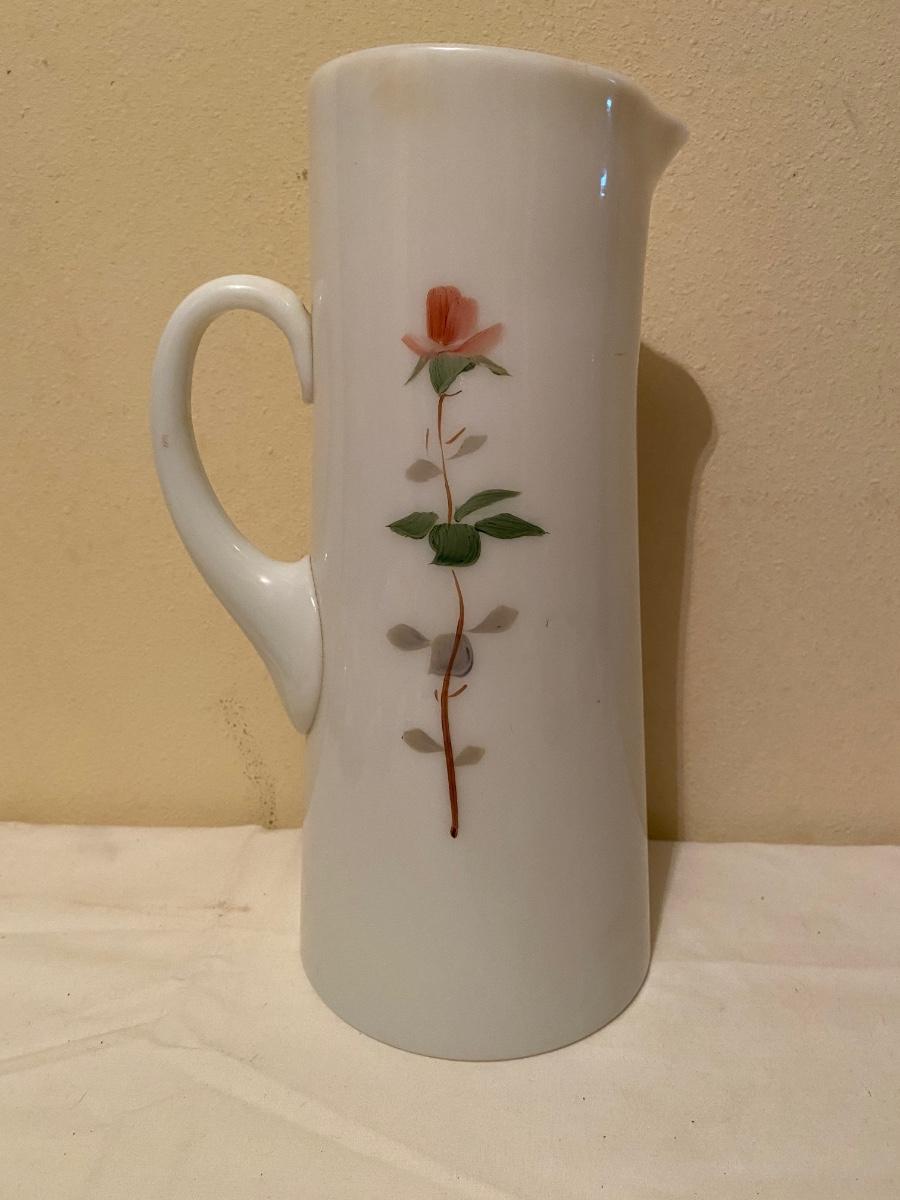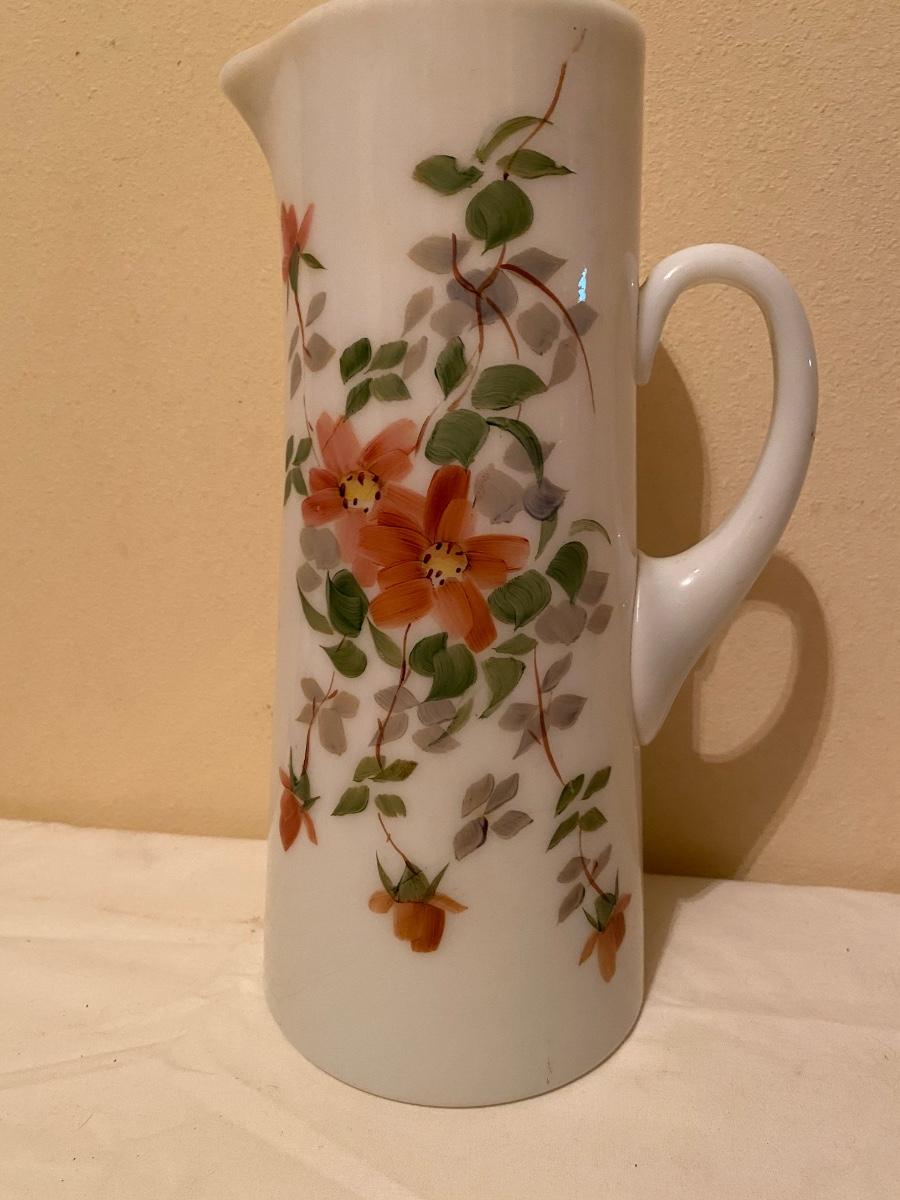Vintage tall milk glass pitcher with flowers. Approx 20-3/4h. Very good condition