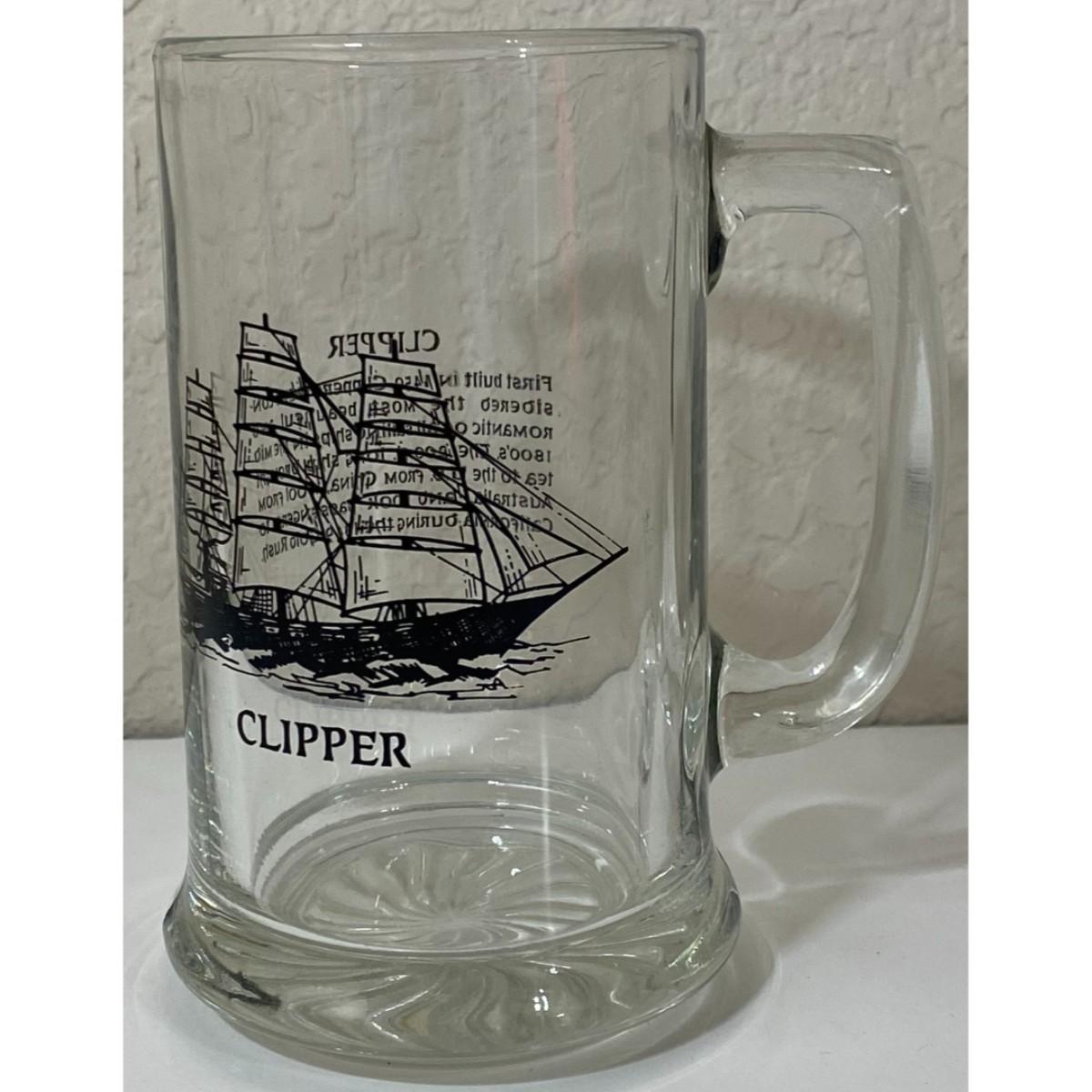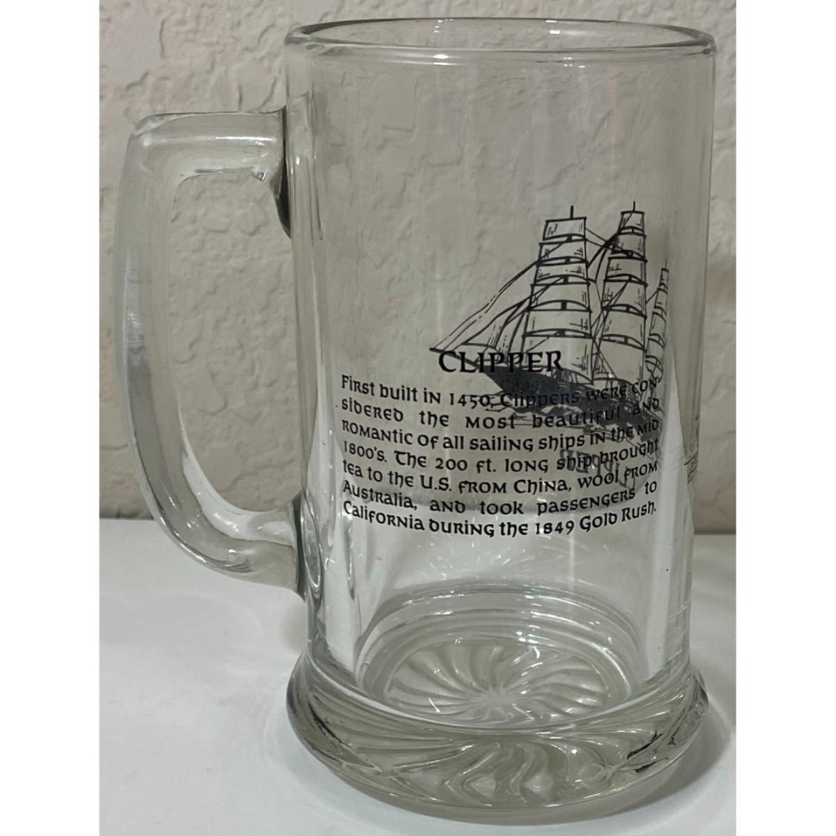 You get two mugs that are in good condition with minor surface wear. The Tall Ships mug is ceramic and measures roughly 3.5" tall and has a 3.5" diameter. The Clipper mug is glass and stands approximately 5.5" tall, has a 3" diameter at the rim, and a 3 3/8" diameter at the base. Please see all pictures. Thank you for looking. As a reminder, if this is a lot, we do not break up lots. Also, all items are prepacked, so each item is sent individually. Any item that qualifies for media mail and weighs over one pound will be shipped via media mail. Otherwise, the item will be shipped USPS ground advantage, or UPS ground. Shipping for this item is $12.00. Items ship within two days after payment is received. Item SKU is MUG322.