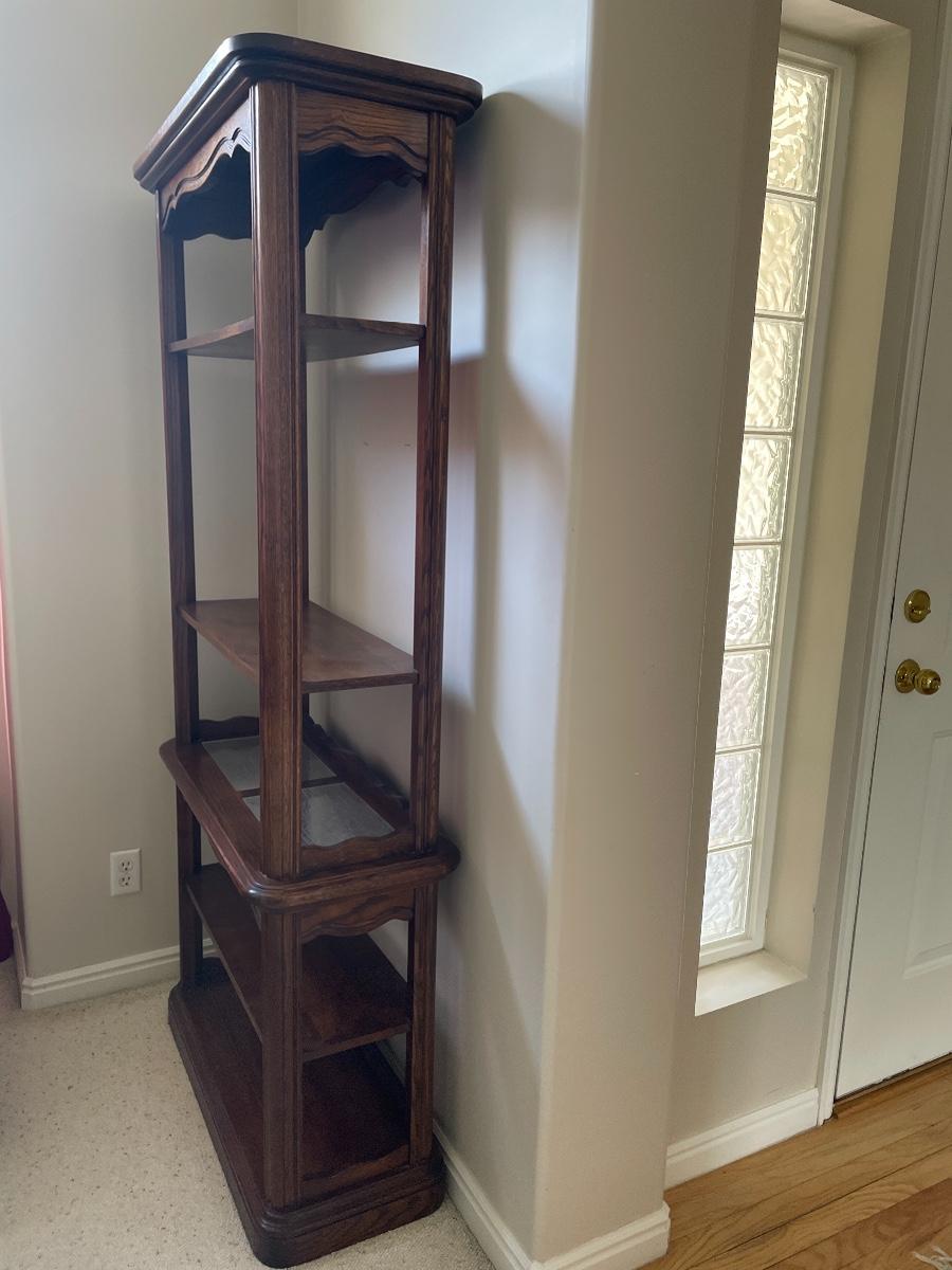 #6 Two Matching Vintage Tall Wooden Decorative 5 Shelf Bookcases