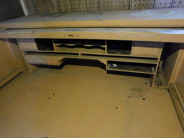 Vintage Tambour Roll Top Desk with Raised Panels. This is a very exciting piece and was used in a hardware store from the Mid-Century. Very solid. Needs refinishing but has great character. Size is perfect for smaller spaces. Well built
