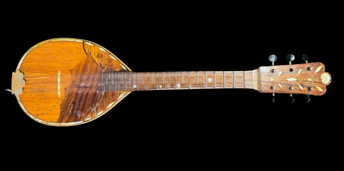 Two pieces. Both have mother of pearl inlay. One has a hard case. [LI]
