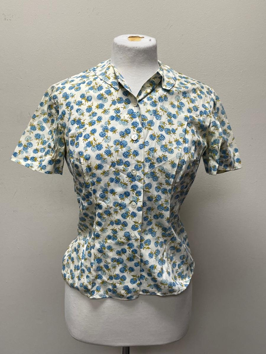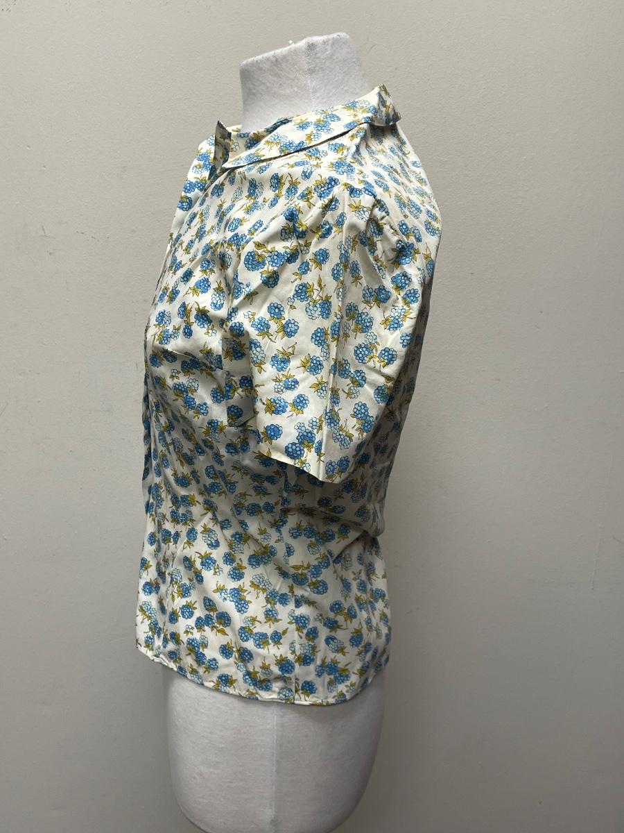 Vintage Tan Blueberry Button Up Short Sleeve Shirt