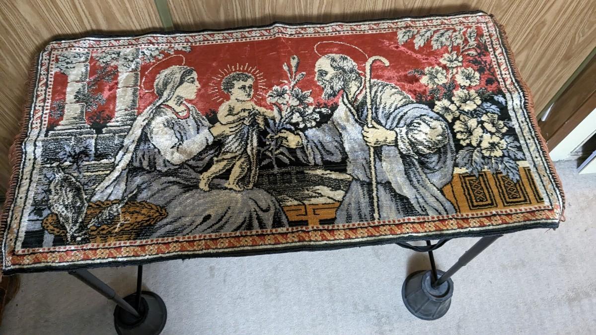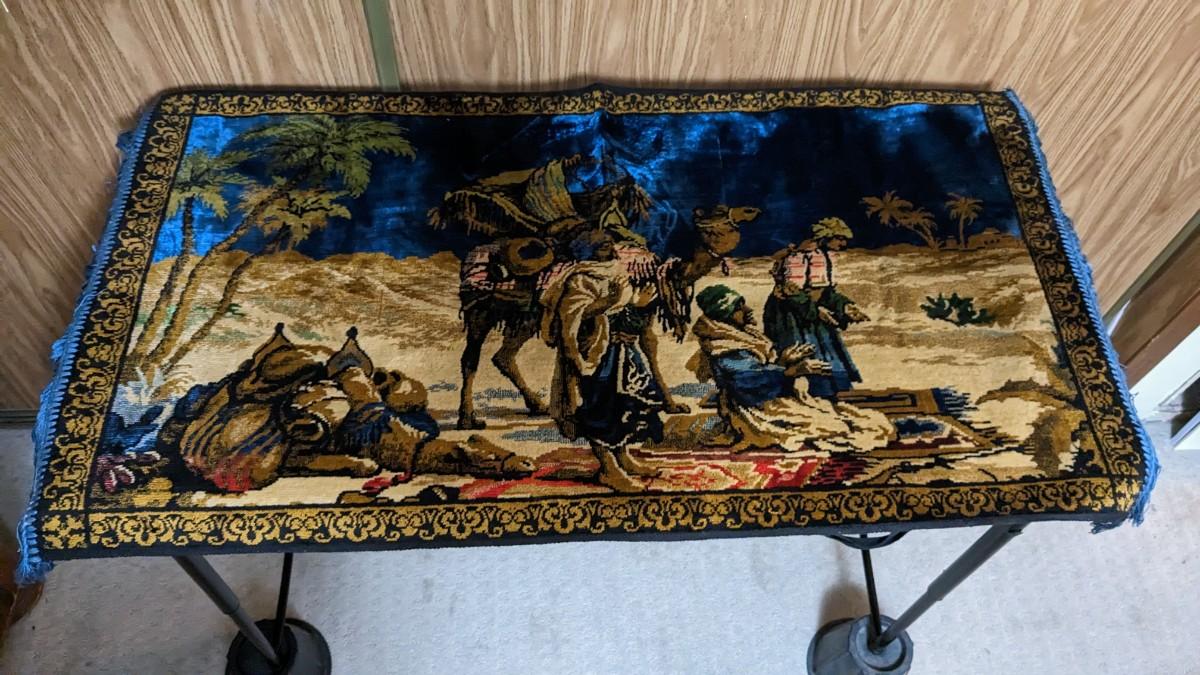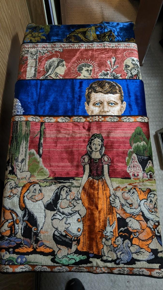 4ea, includes 41"x 21.25" Italian Snow White tapestry with original paper tags still intact. 39"x 19.25" JFK piece with original 1965 tag. A 40.25"x 21.5" Muslim piece, and finally, a beautiful 40.5" x 20.25" religious piece. All are in AMAZING condition for age with no bleeding, thread bare spots, stains, tears, or holes. bdrm1