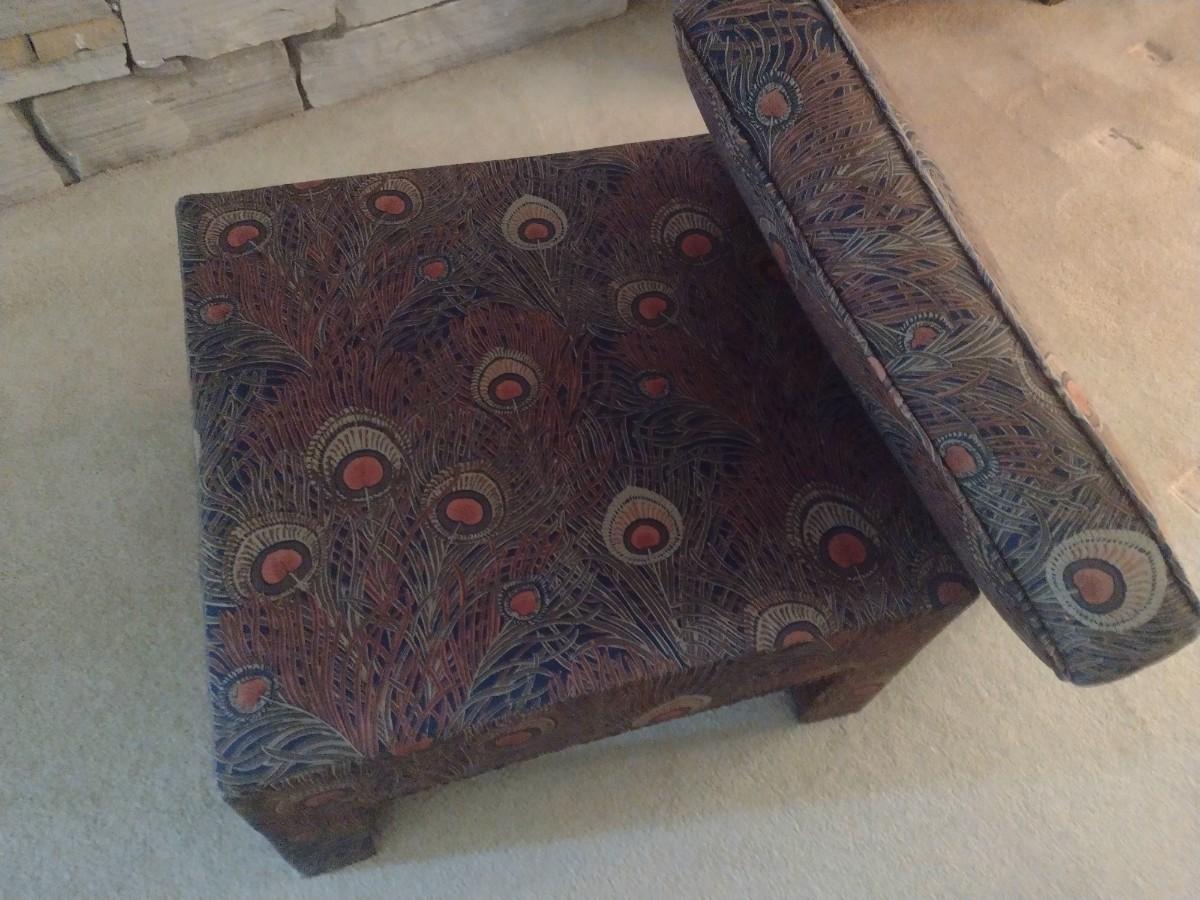 Vintage Tapestry Ottoman with Removable Peacock Feather Pattern Choice B