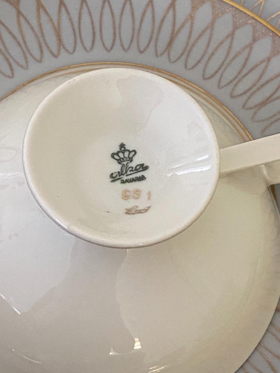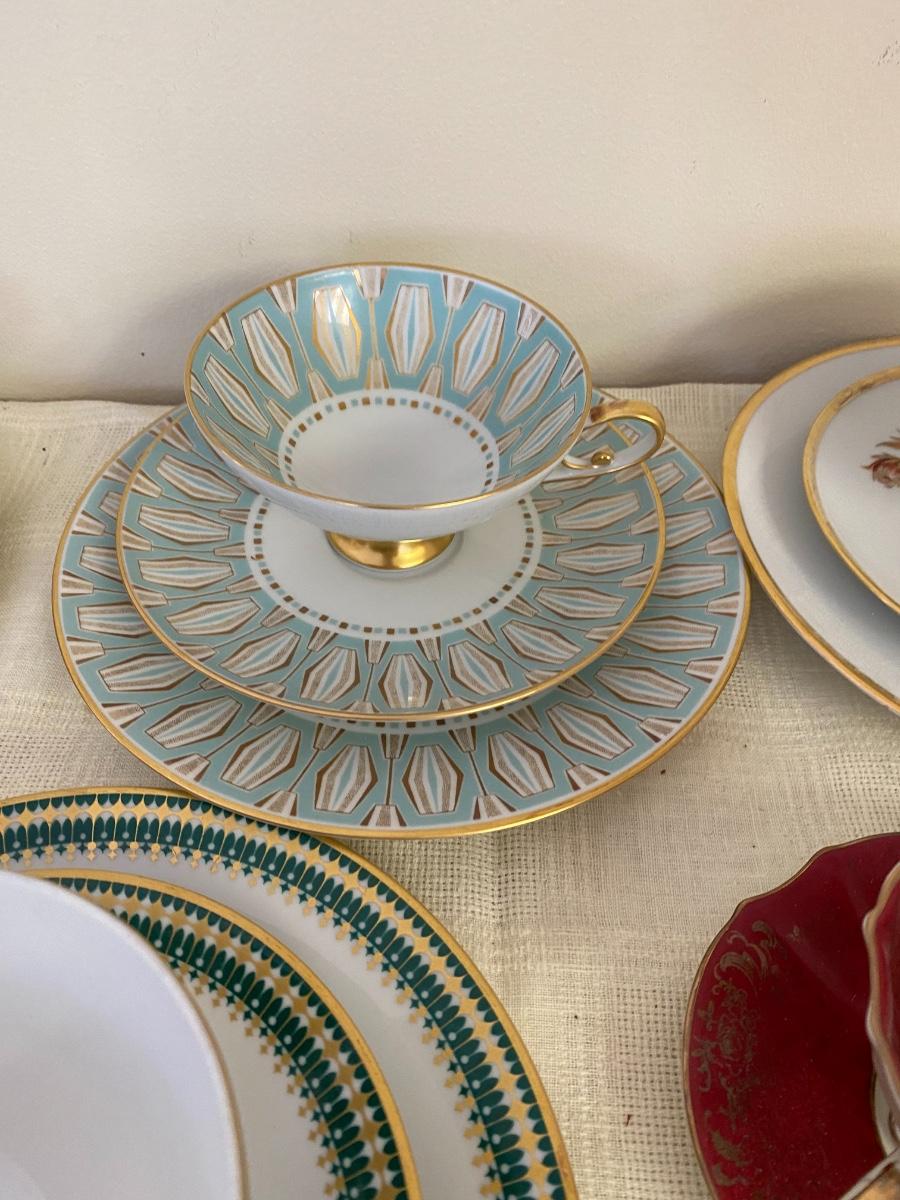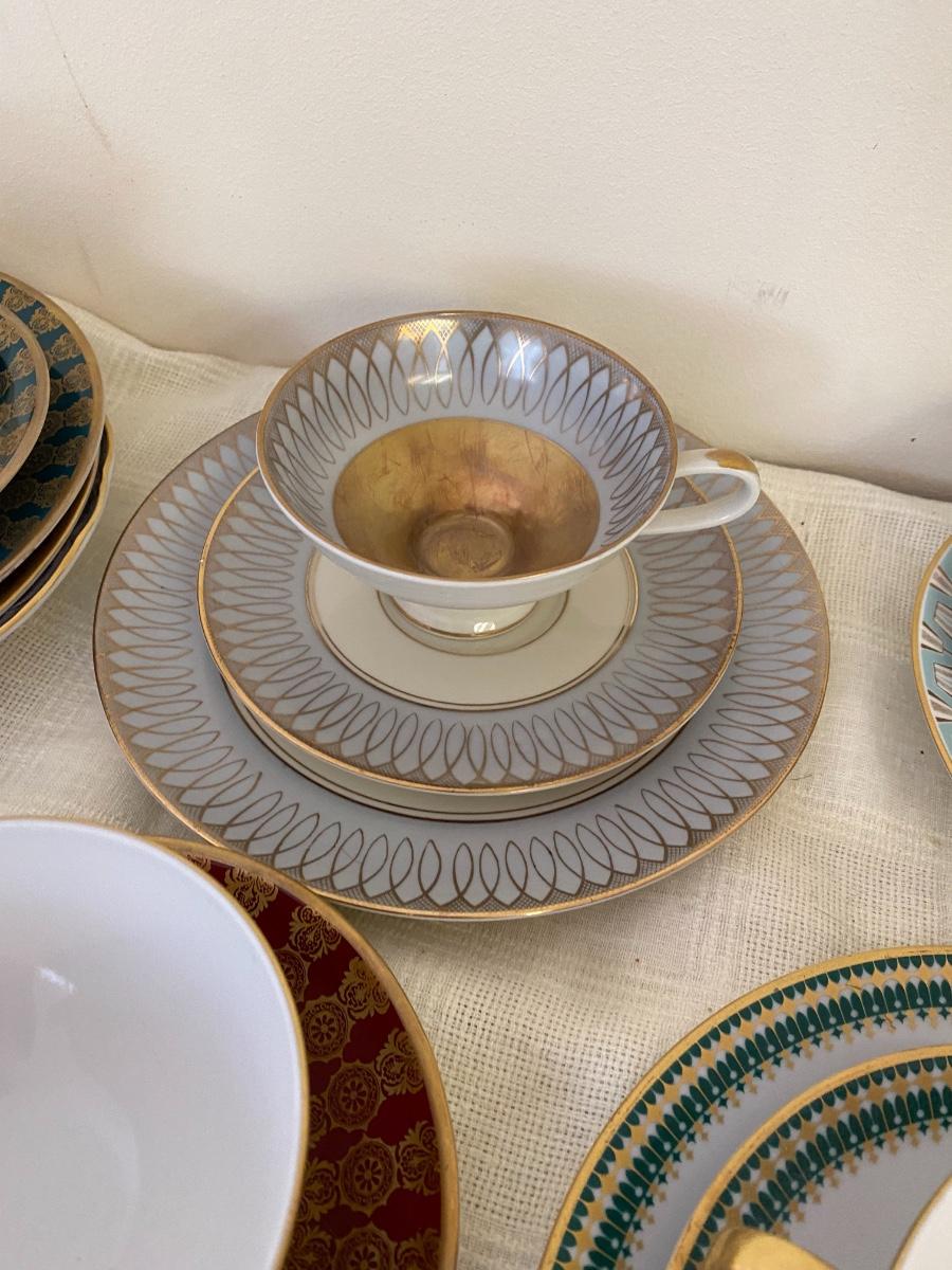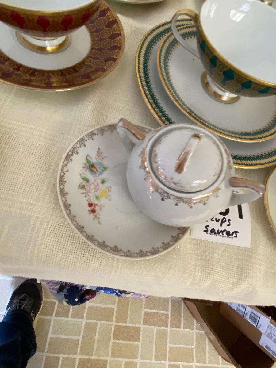 Vintage tea cups and saucers. In guestroom closet.