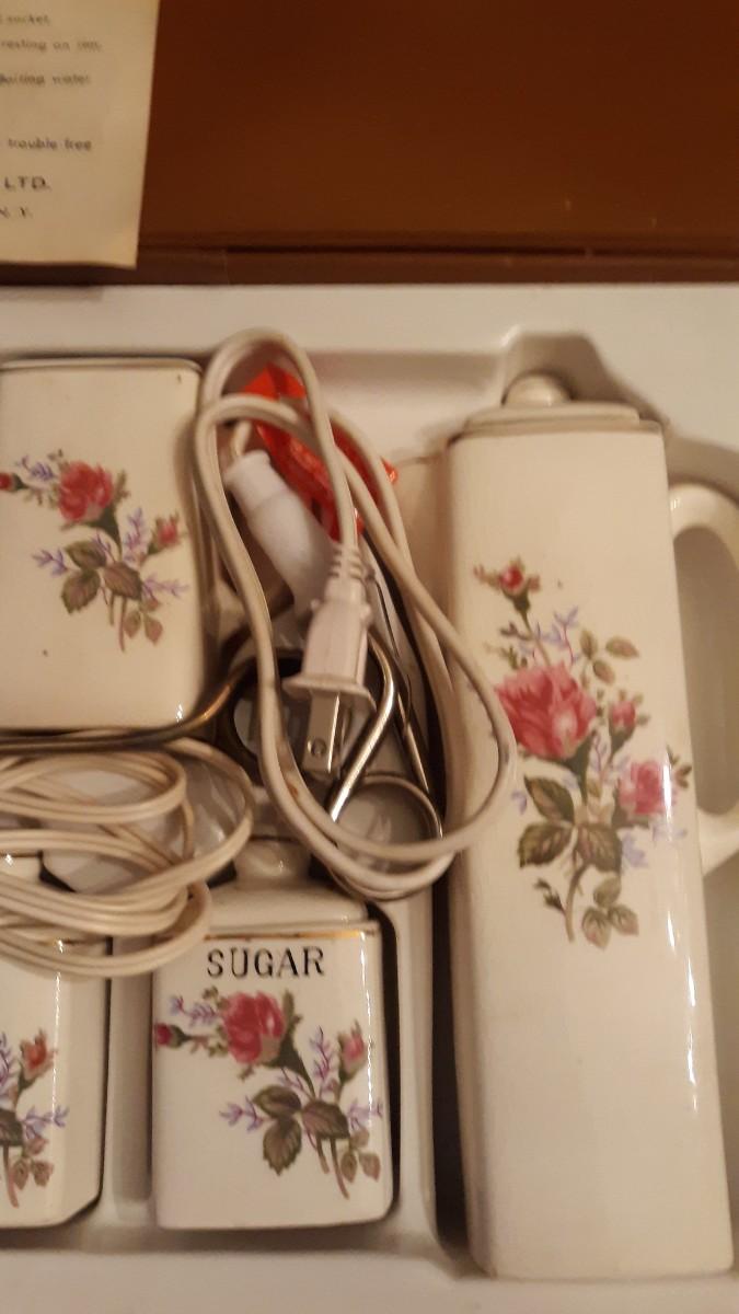 Vintage tea set with two warming units. One is original to the set and does not heat up -needs a little work- The newer unit works.
