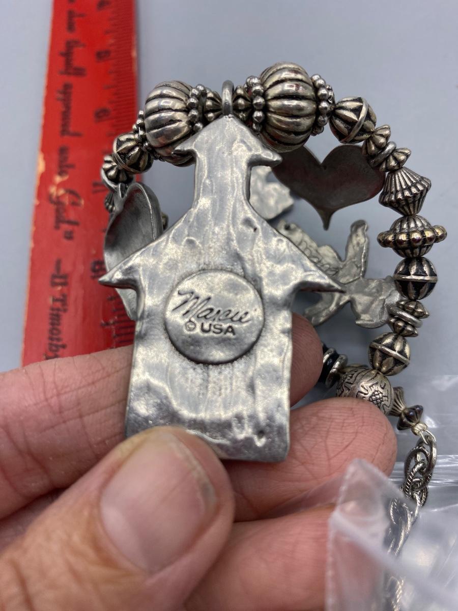 Vintage Teacher Themed Pewter Charm Necklace Marcie USA