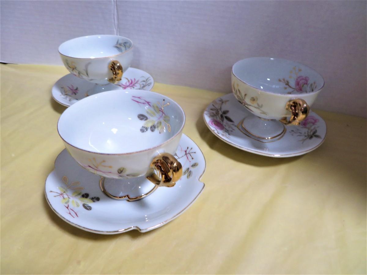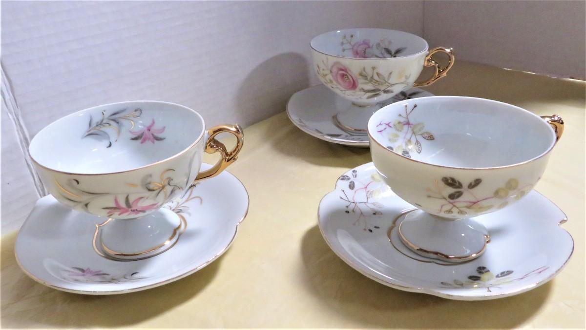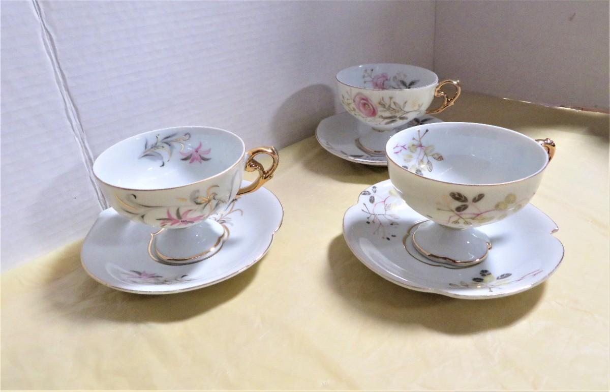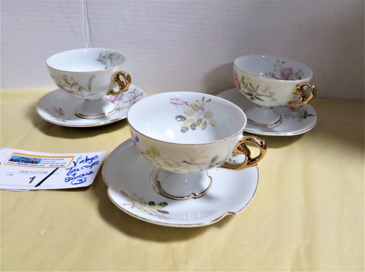 Vintage Teacups & Saucers LOT (3) Shaped Base USA