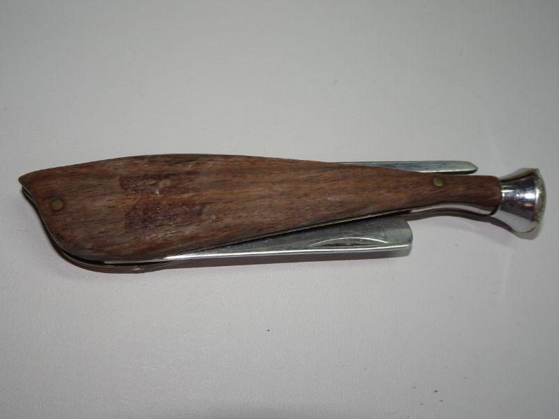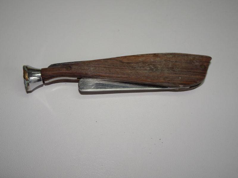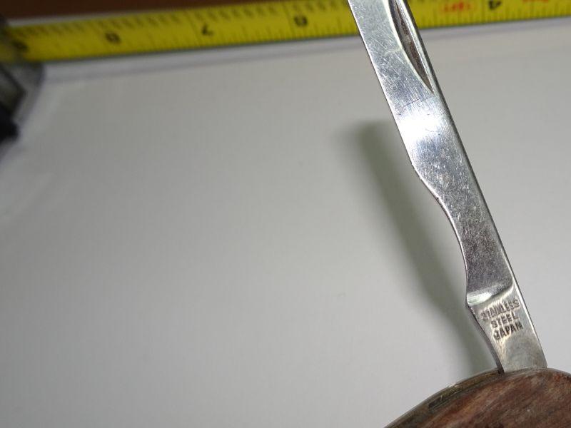 Vintage Teak Wood Pocket Knife like Can Opener, Stainless, Japan, MCM