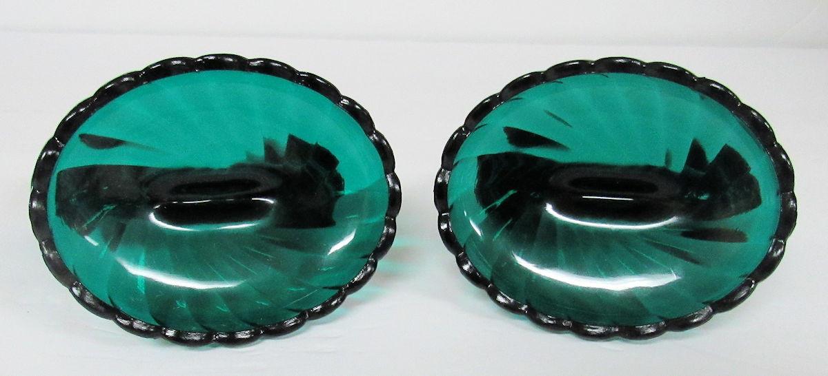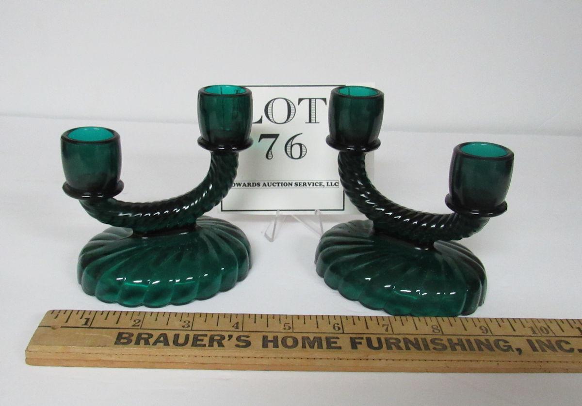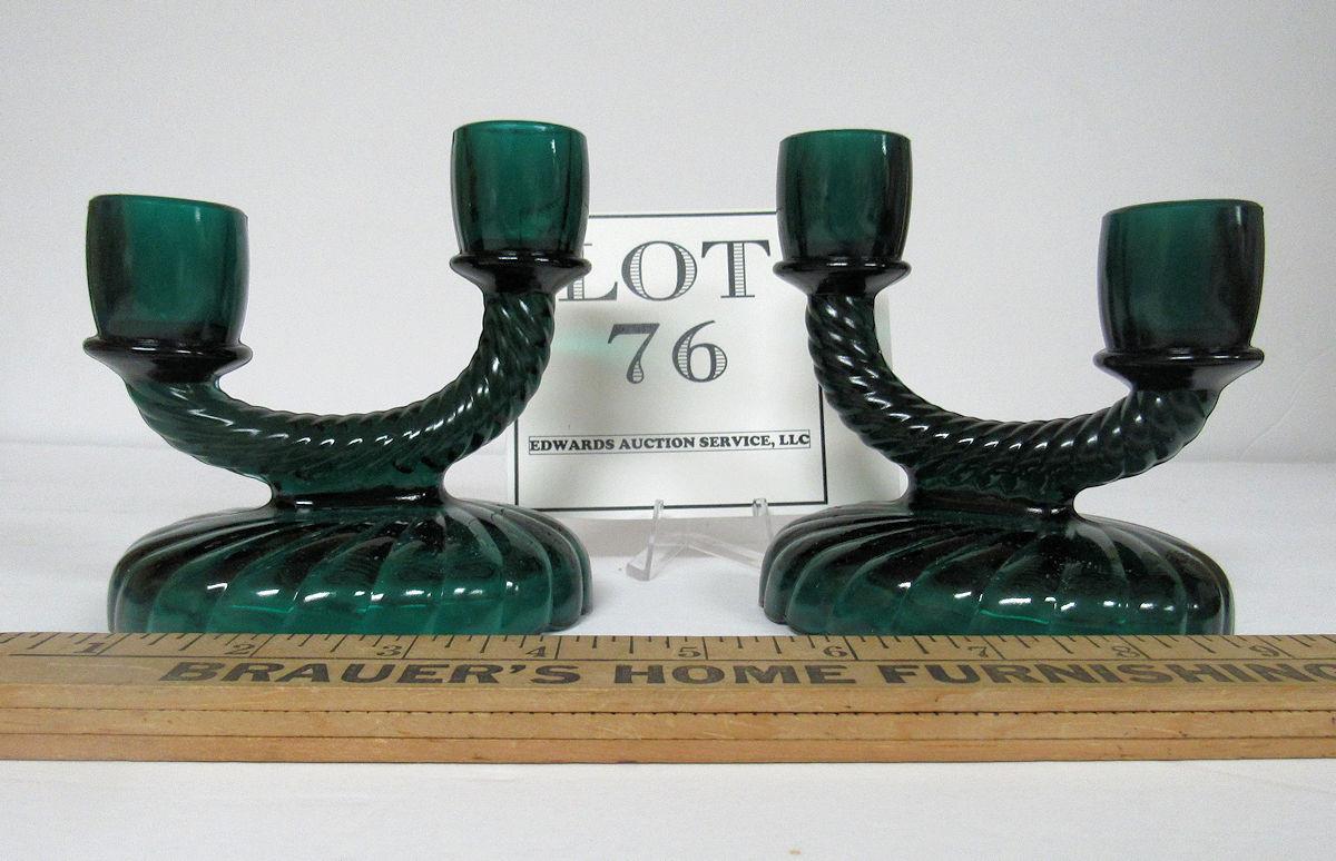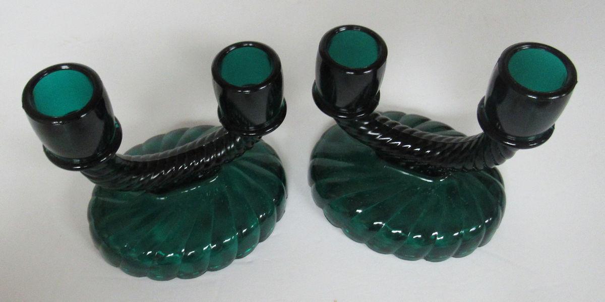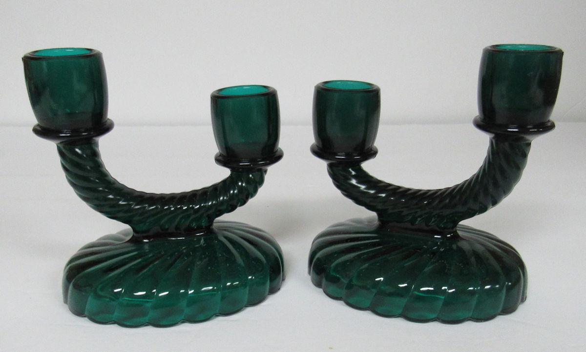 Vintage Teal Colored Imperial Glass Two Lite Candlesticks, Newbound Pattern