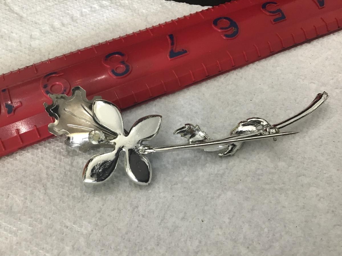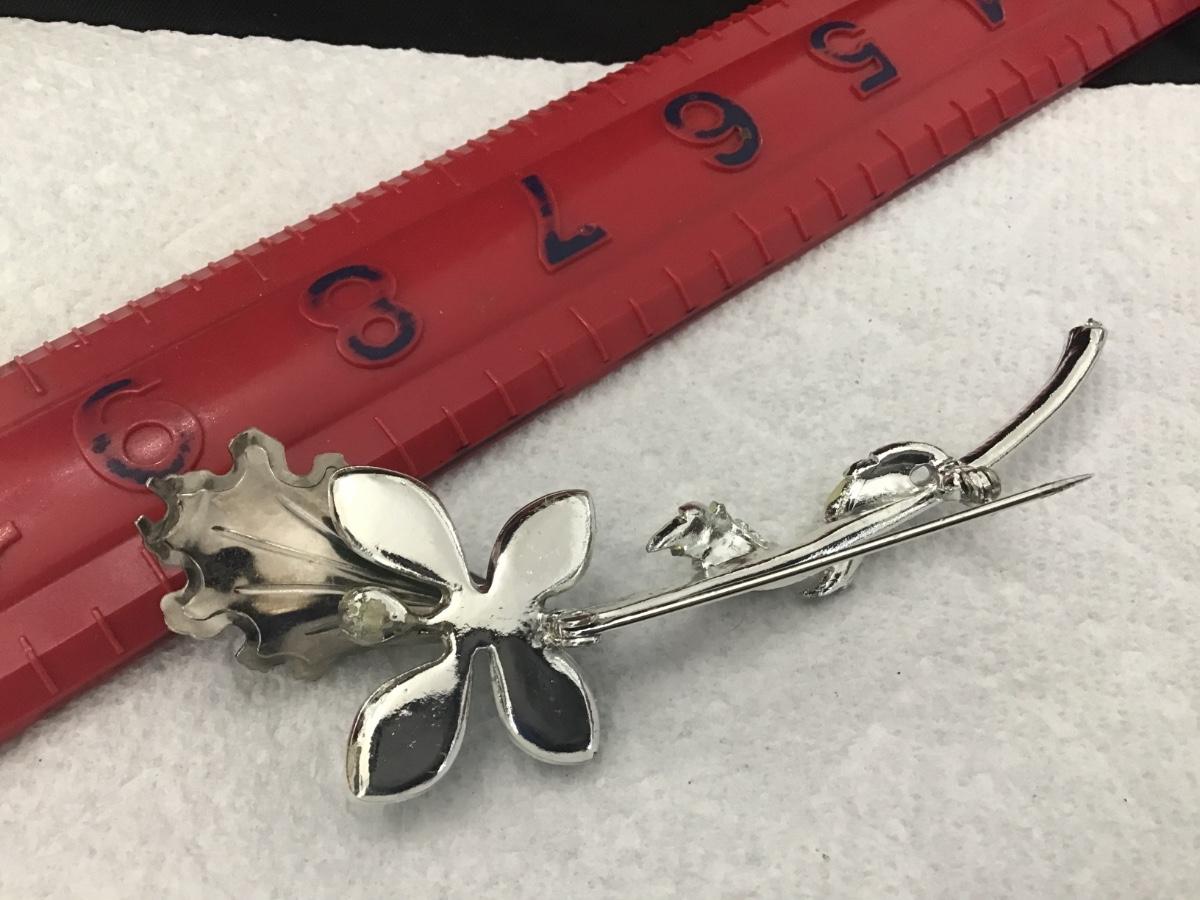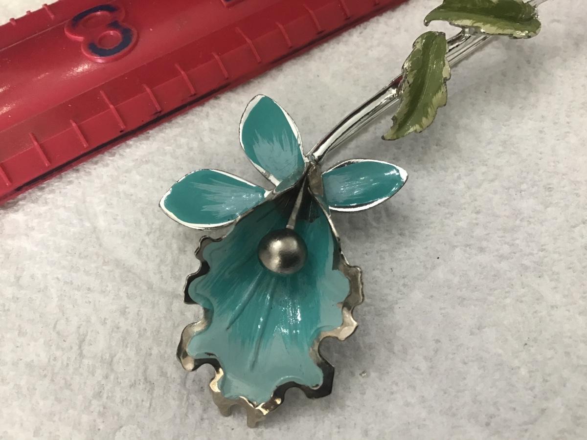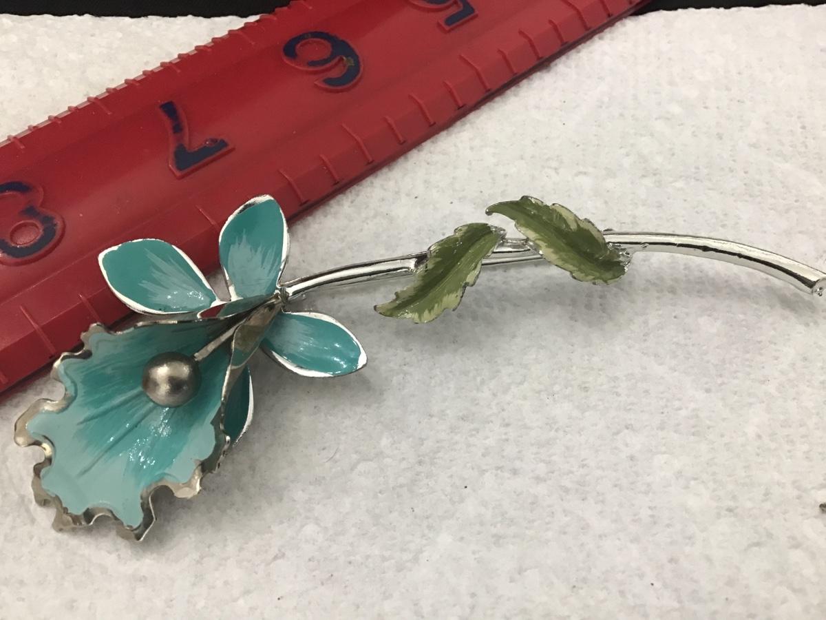 Vintage Teal Flower Enamel Brooch Pin. Large