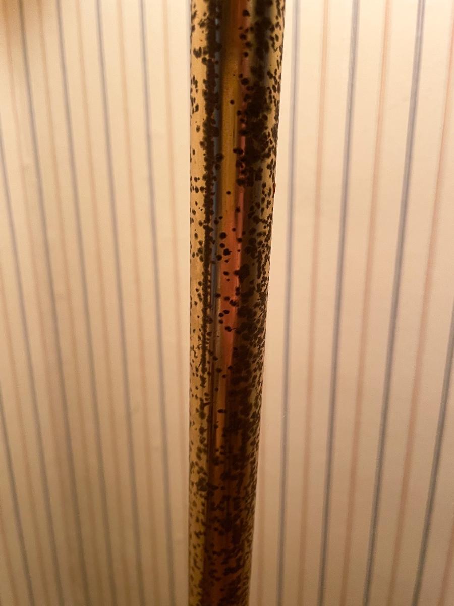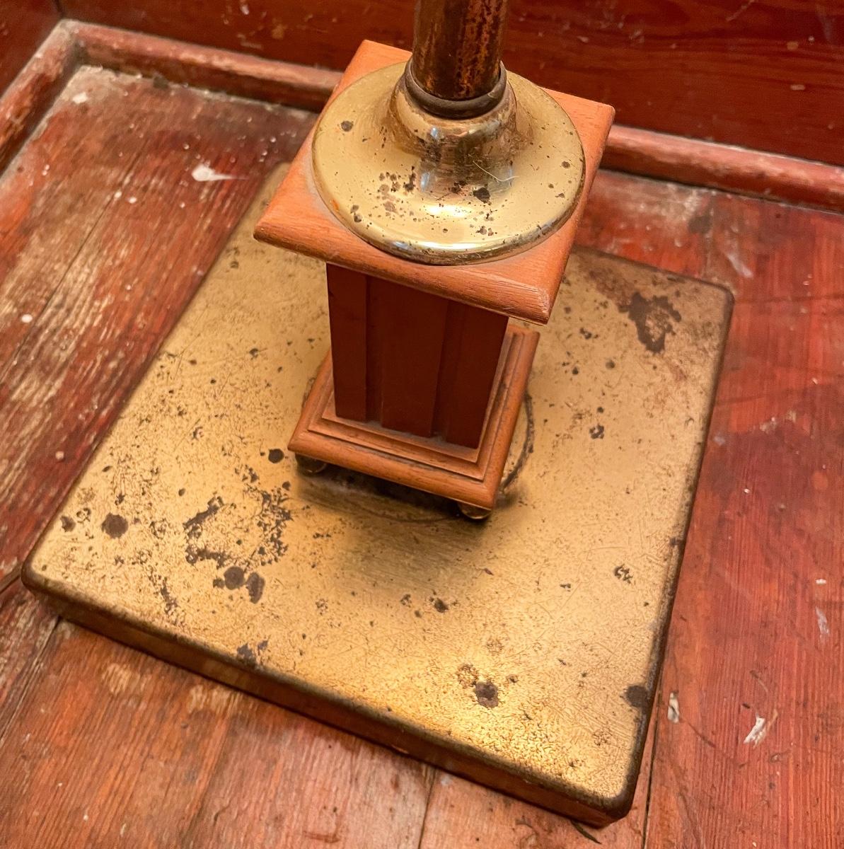 Approx 5’ tall. Base shows decent signs of wear. Does have some issues with the knob that turns it on...please see photos for more details.