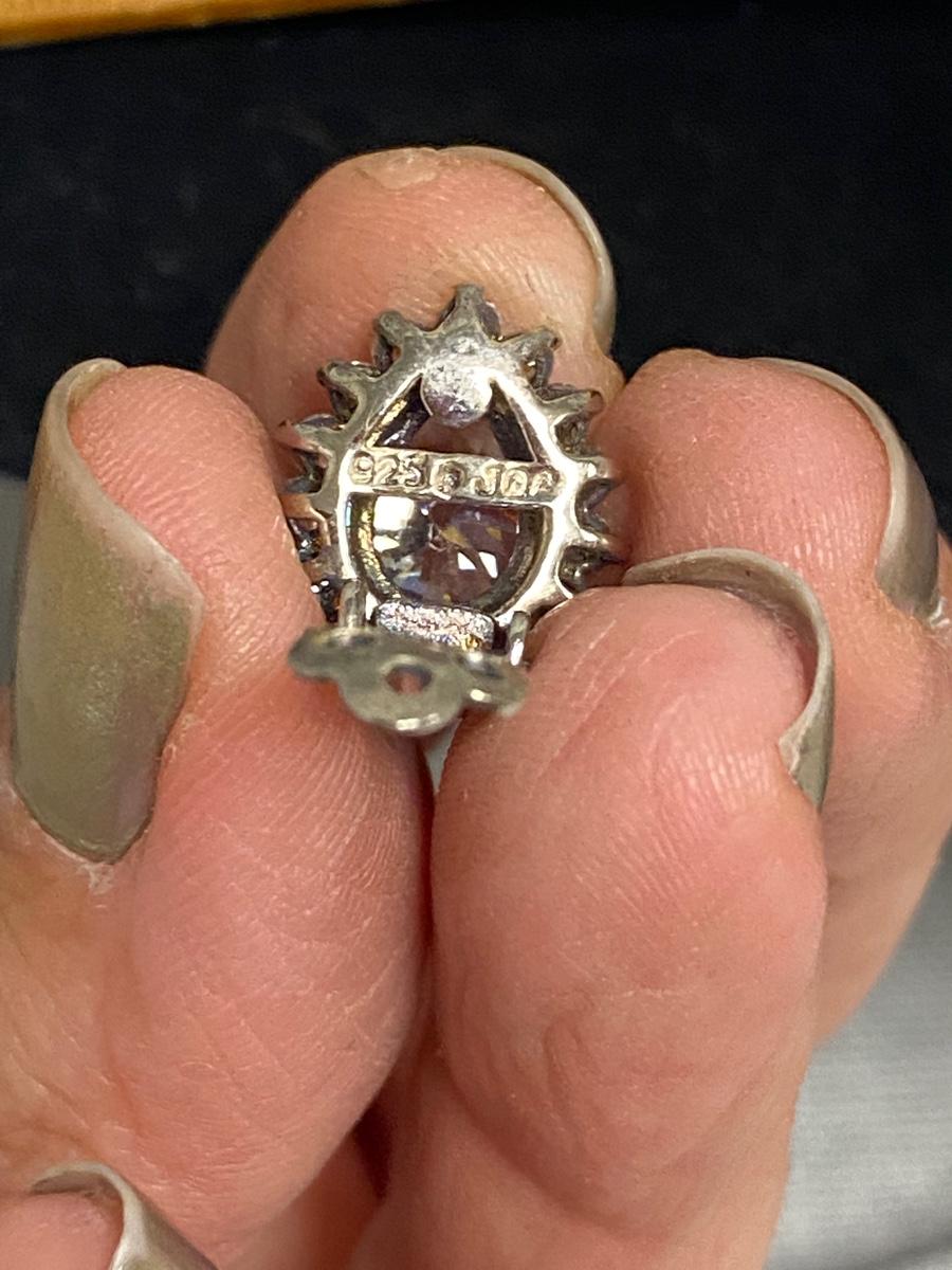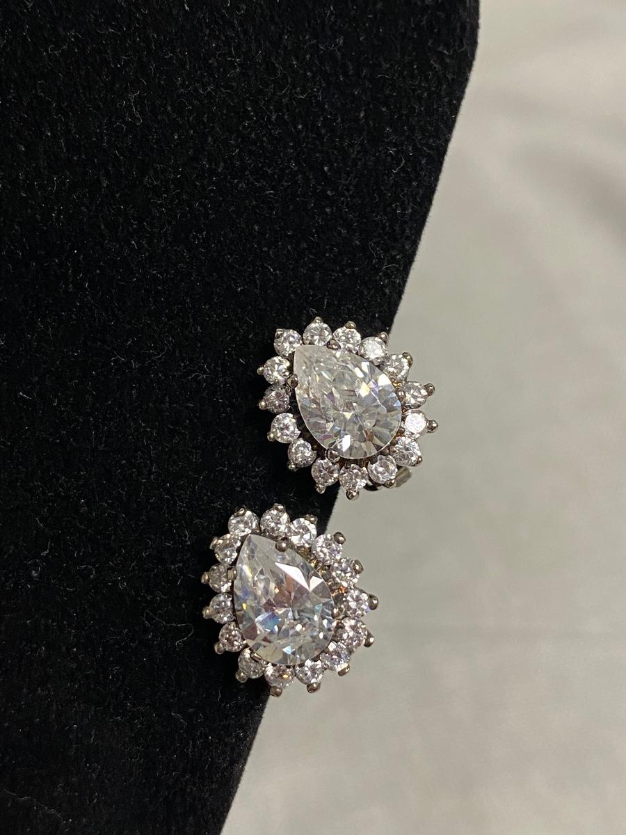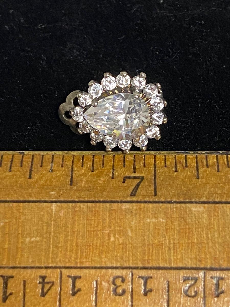 Vintage Teardrop Rhinestone Clip On Sterling Silver 925 Earrings