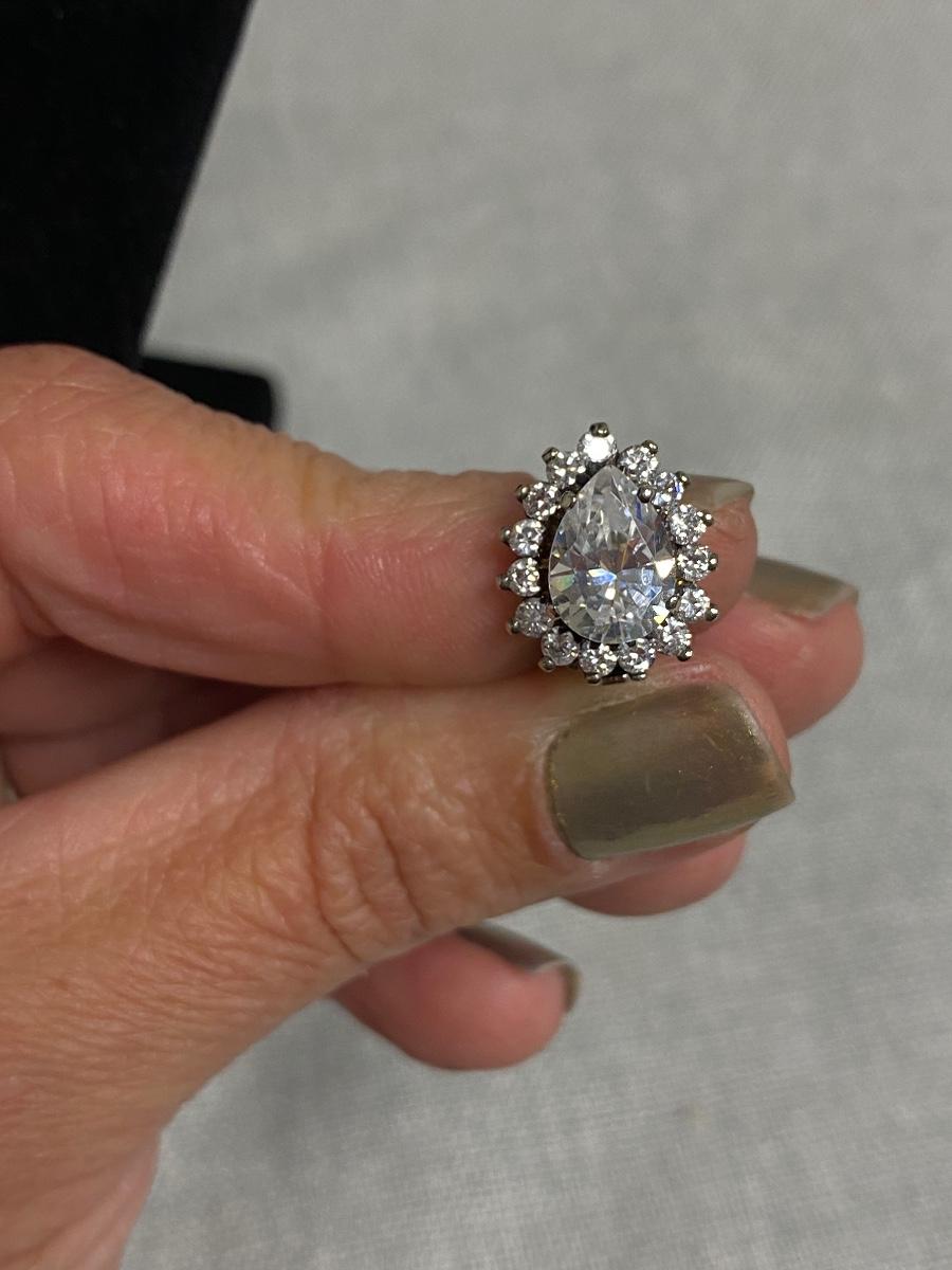 Beautiful vintage teardrop rhinestone clip on earrings. Sterling silver setting, stamped on the back. About 1/2" size.