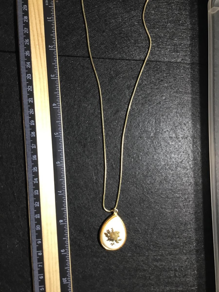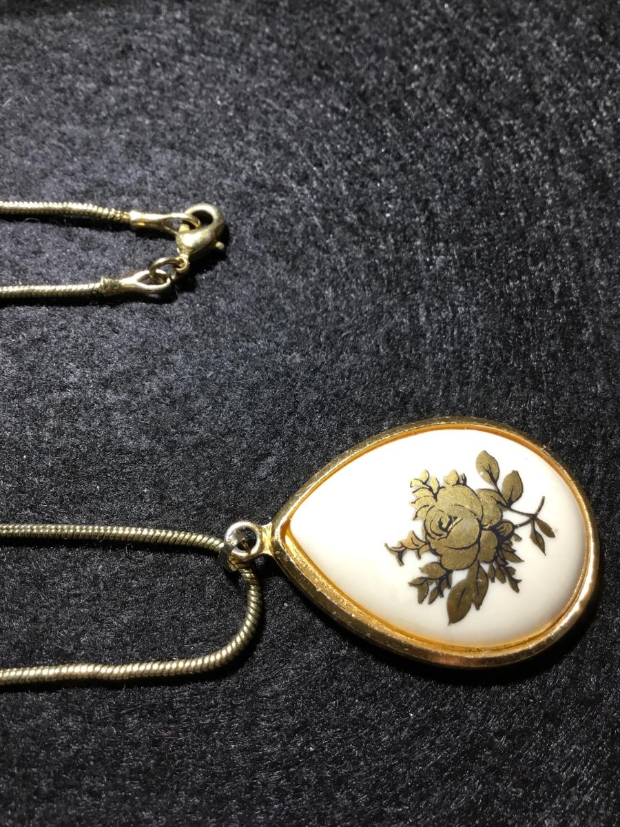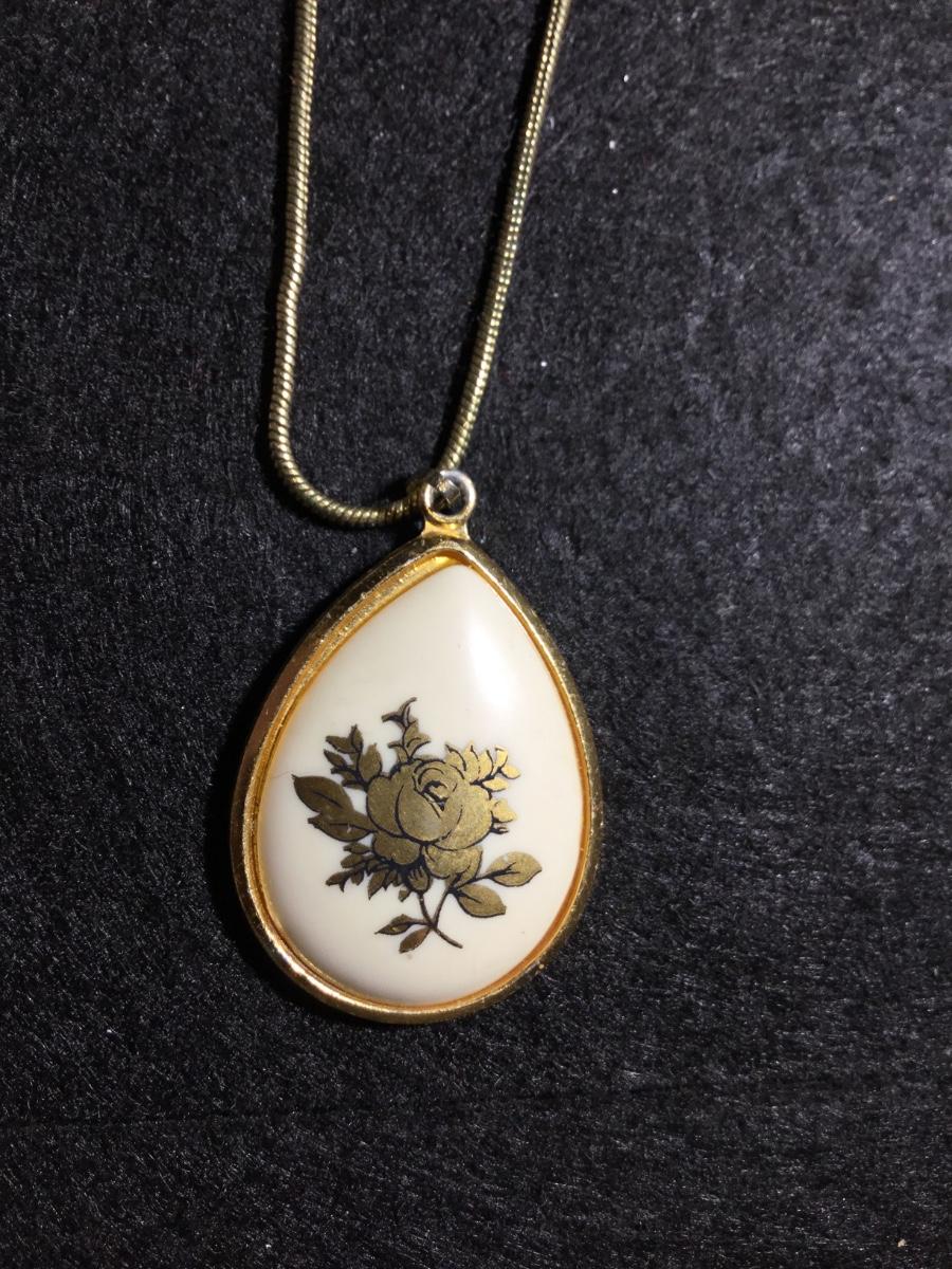 Vintage teardrop shaped gold tone rose design porcelain type unmarked
