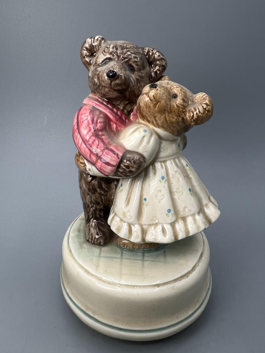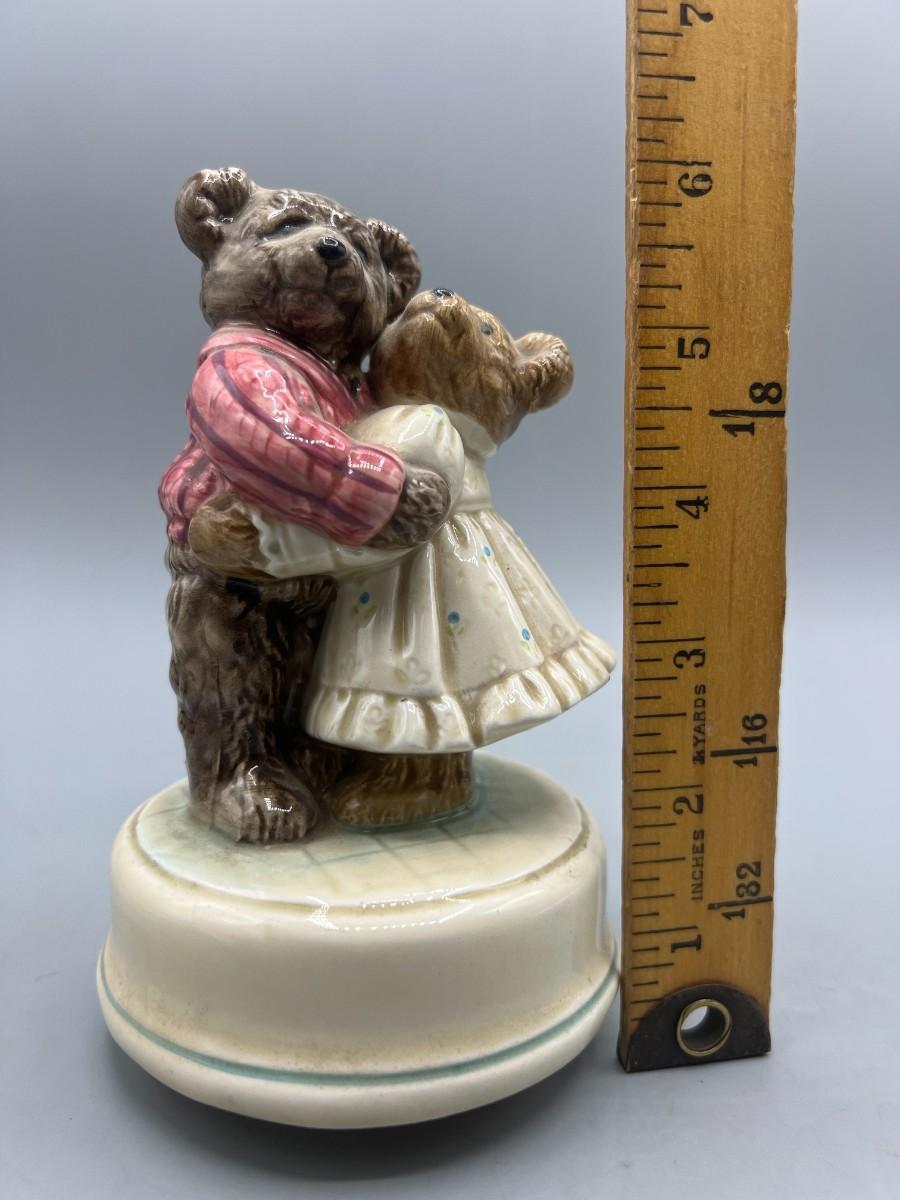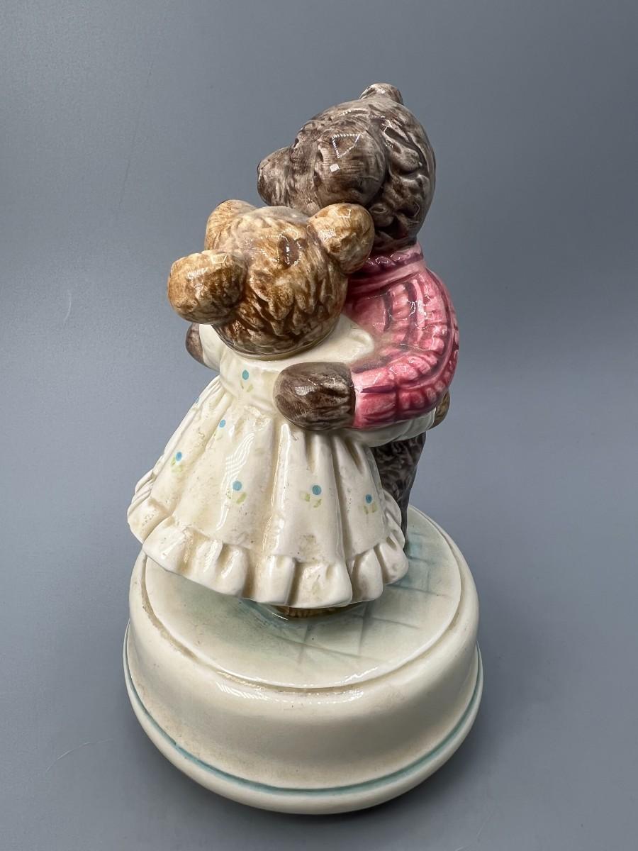 Vintage Teddy Bear Couple Music Box. Hand Painted. About 6" size.