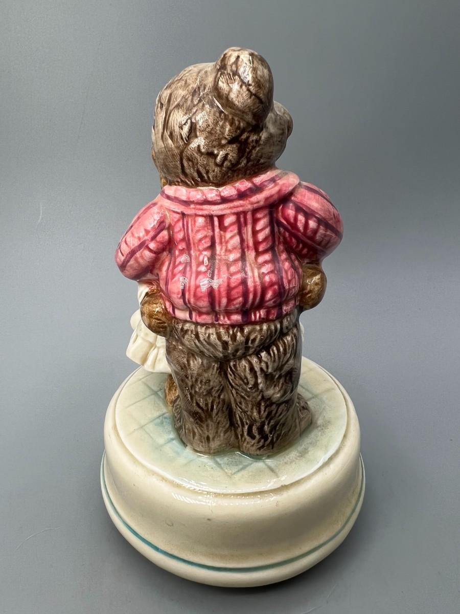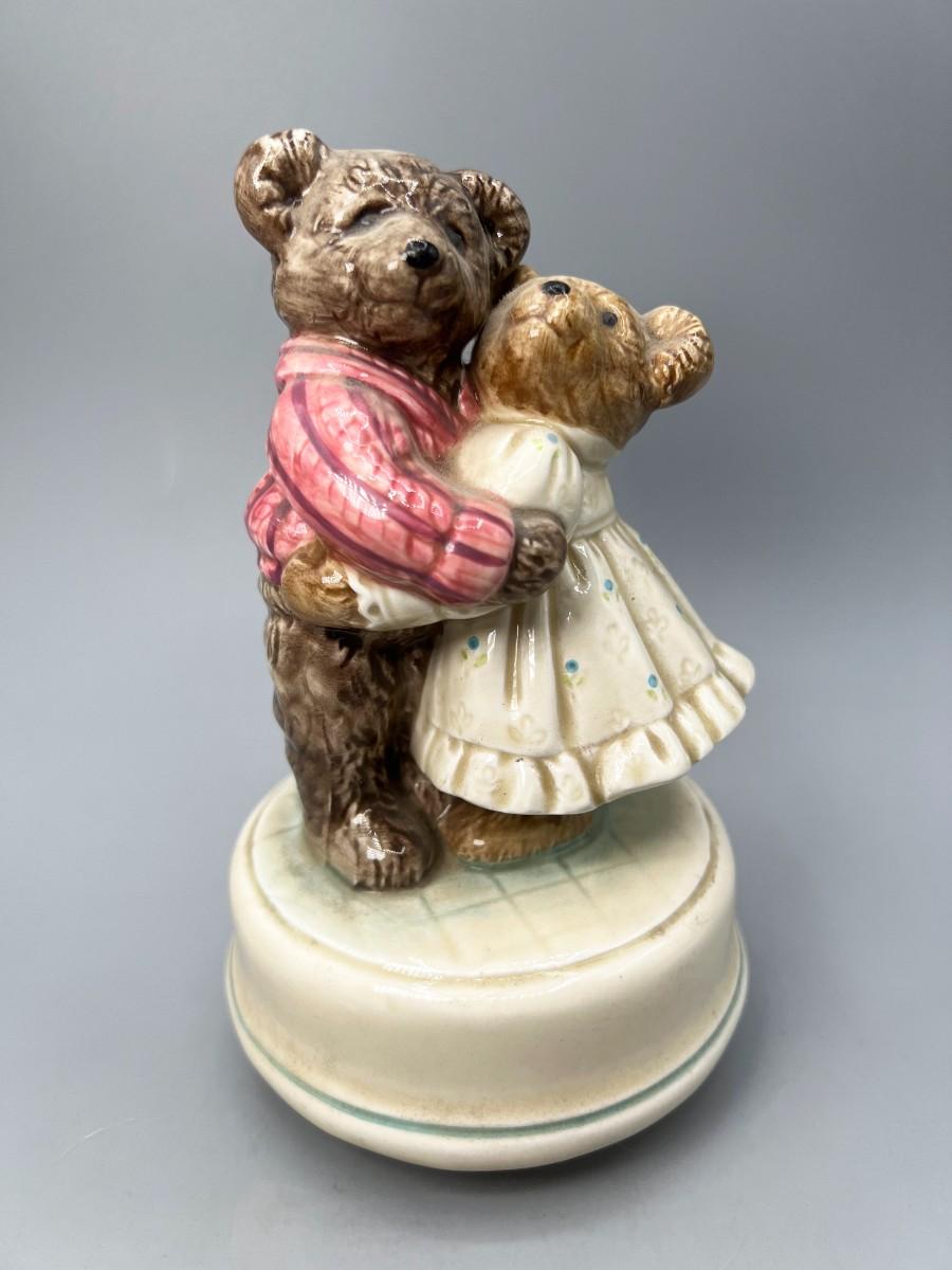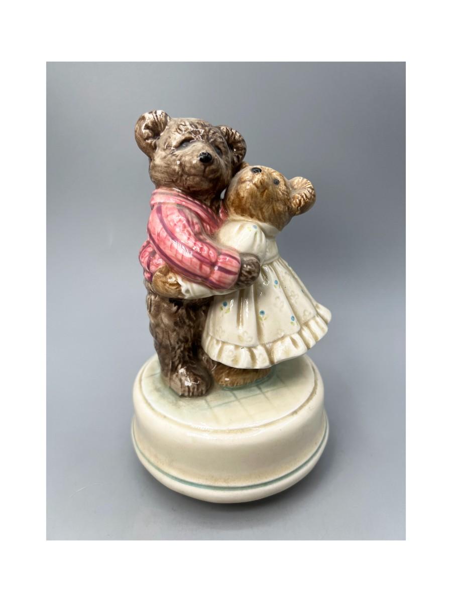 Vintage Teddy Bear Couple Music Box. Hand Painted. About 6" size.