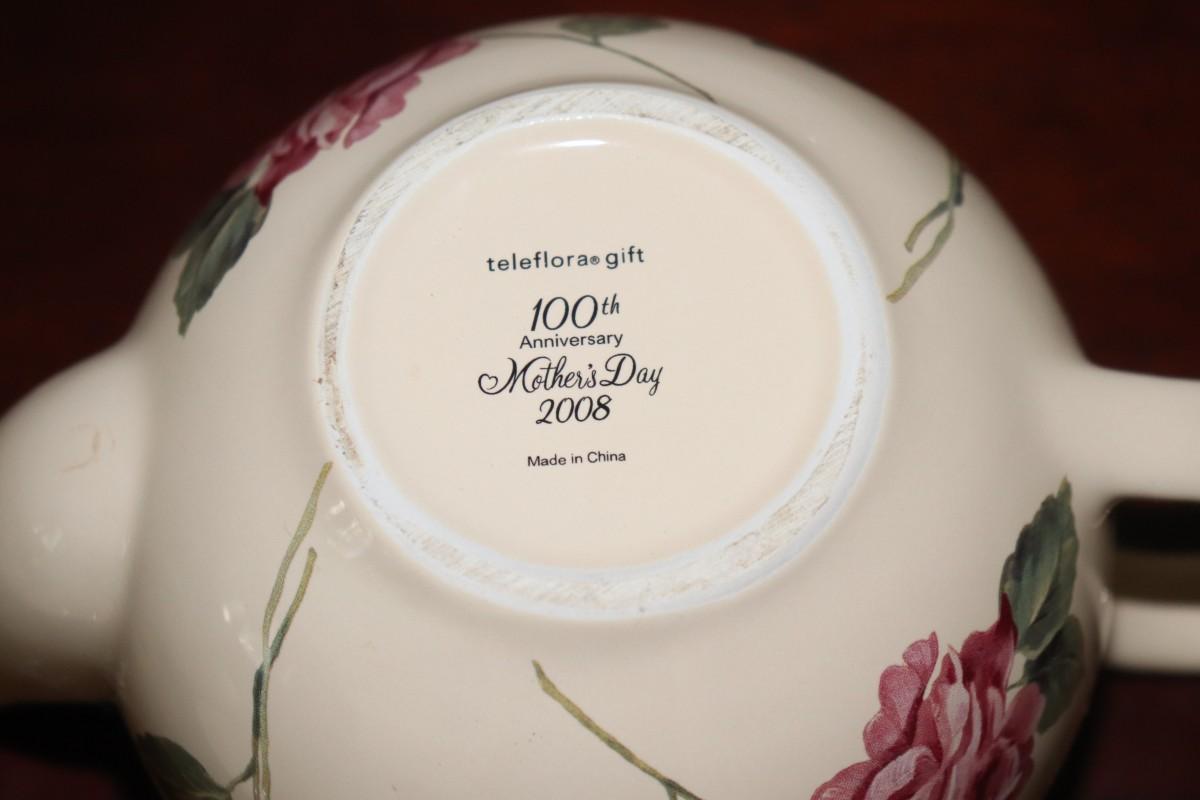 Vintage Teleflora 100th Anniversary Mother’s Day 2008 Teapot with Large Pink Roses