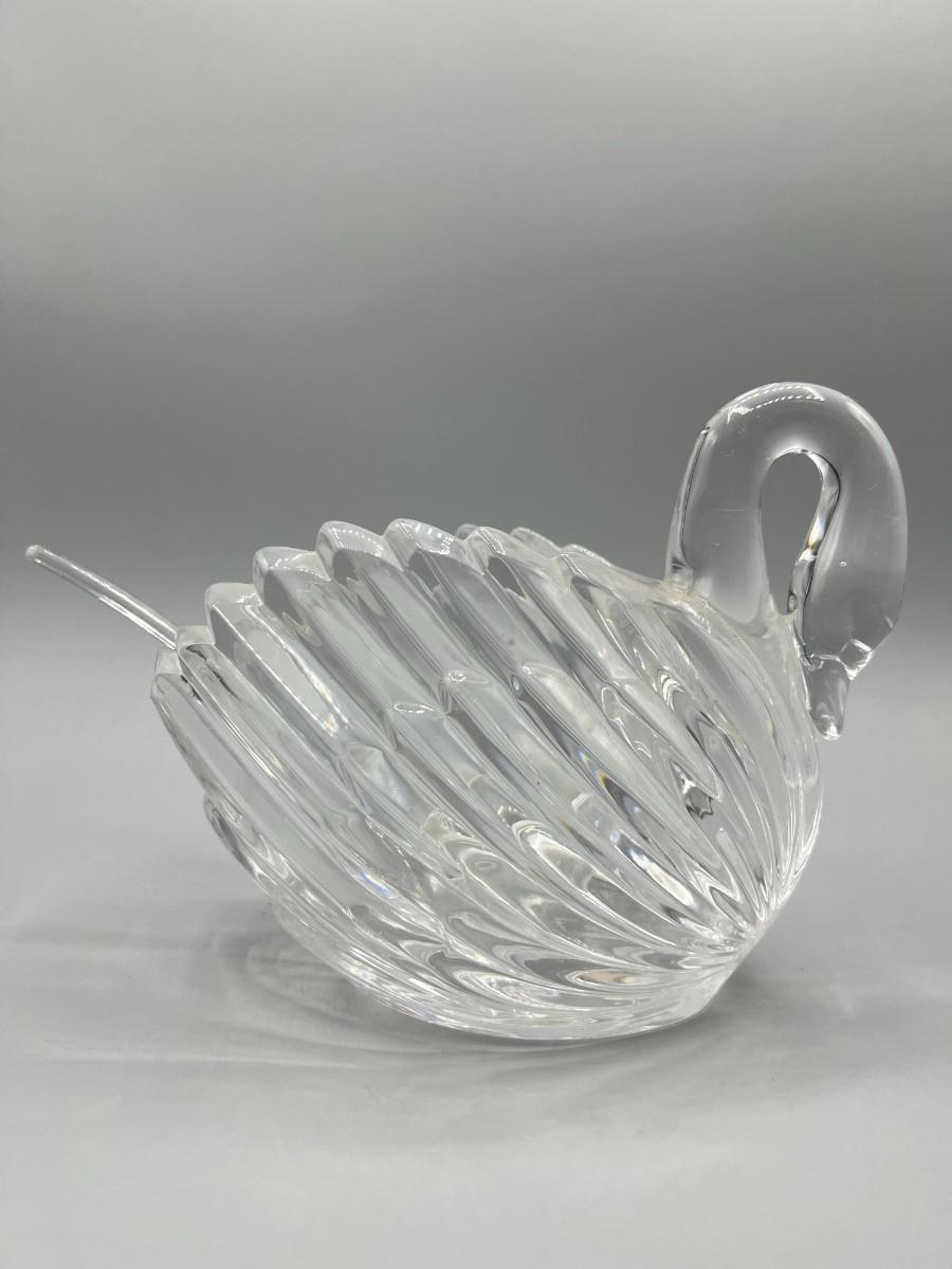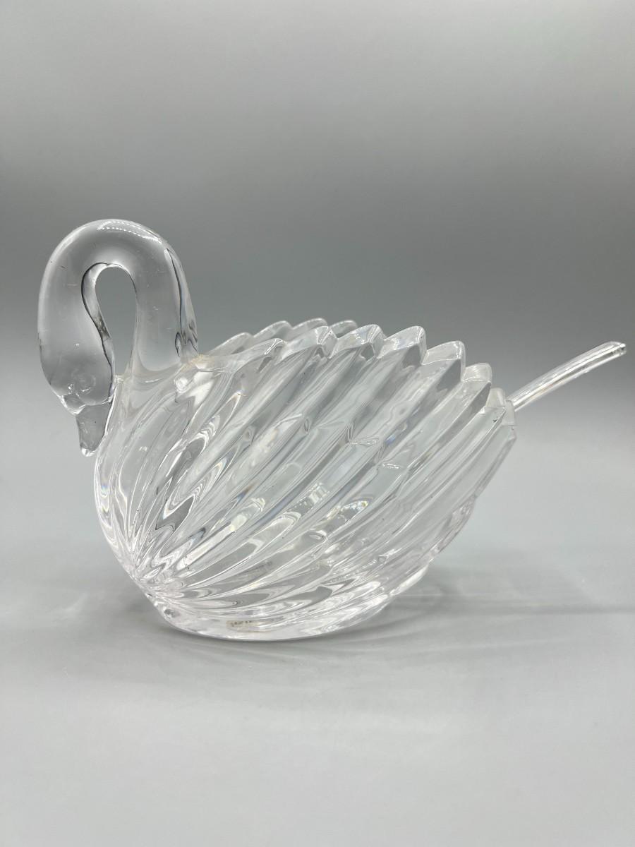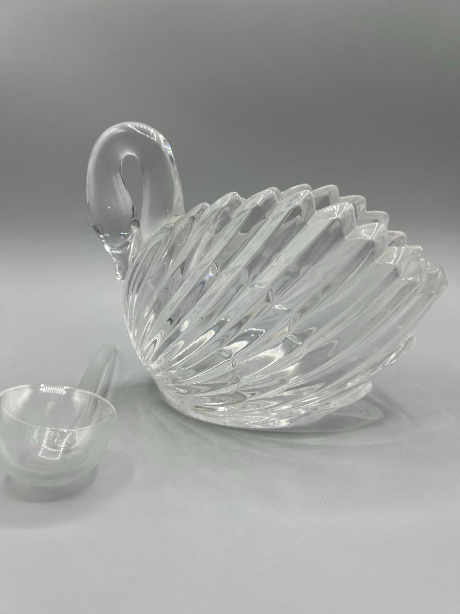 Vintage Teleflora Lead Crystal Glass Mid Century Modern Swan Vase Bowl DIsh