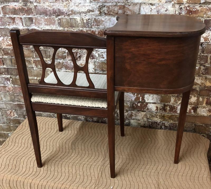 Walnut telephone desk form the 1940's 32" by 16", 300" tall. In good overall condition.