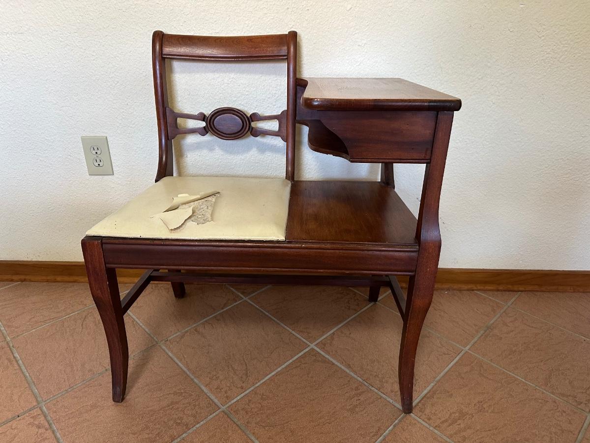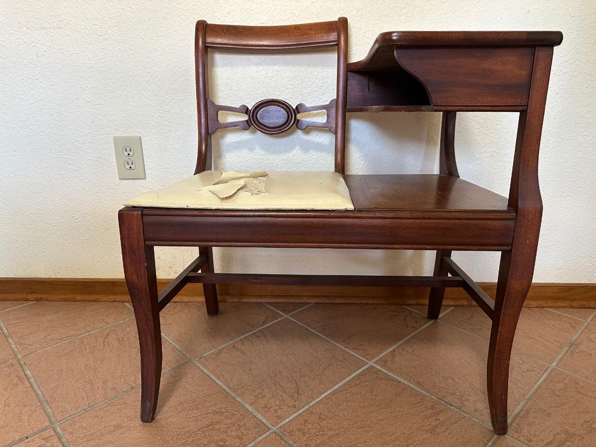 Vintage Telephone Gossip Bench with Side Table & Shelf