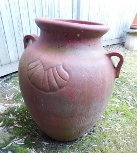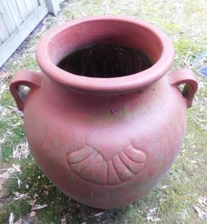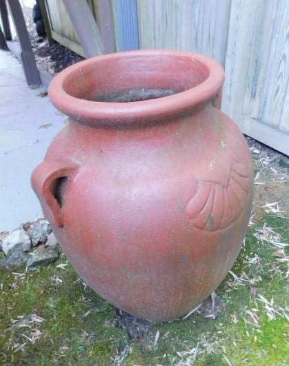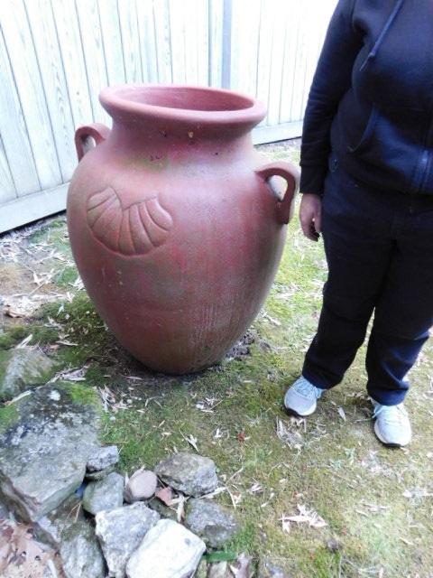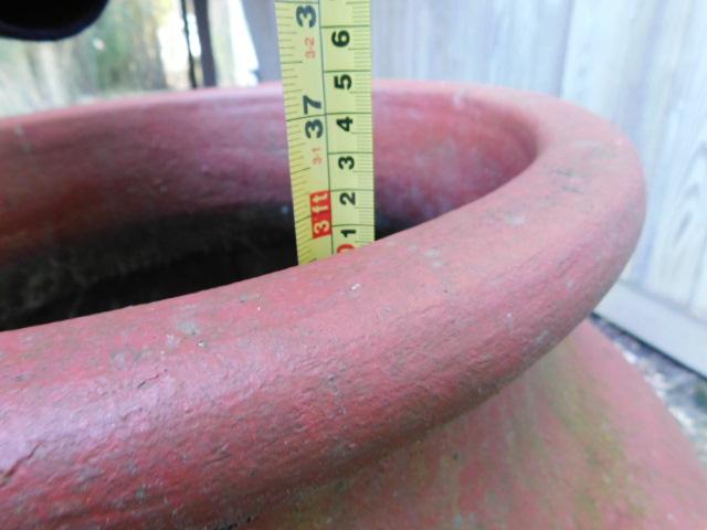 Vintage Terra Cotta Ground Pot 36"x27" has some weathering but in good condition. Will need help to remove due to size and weight.