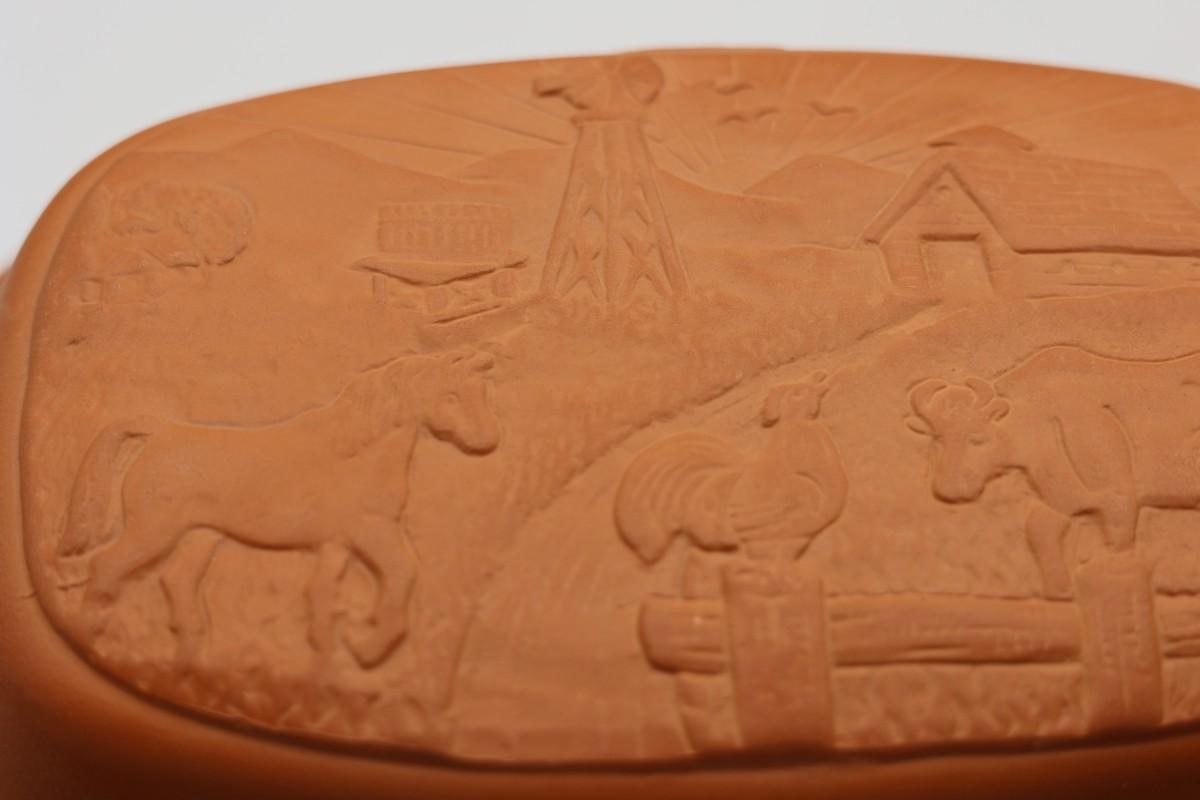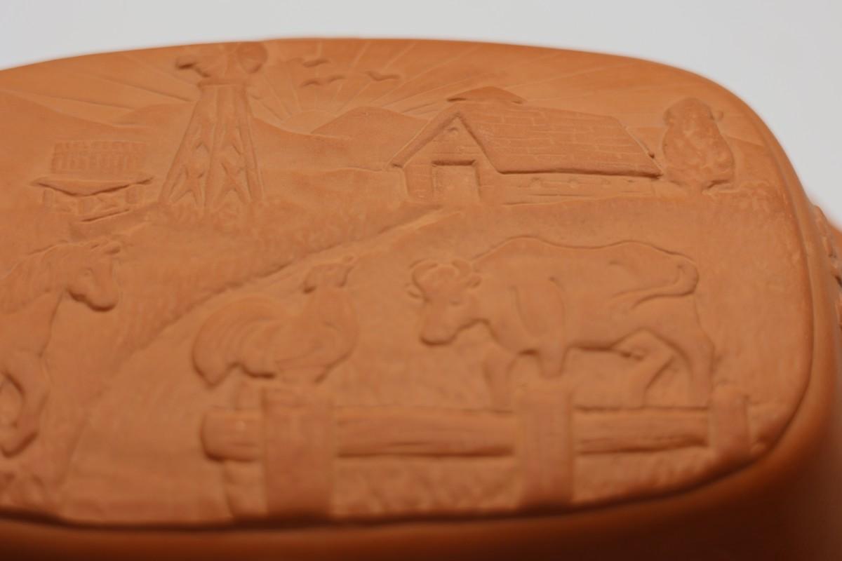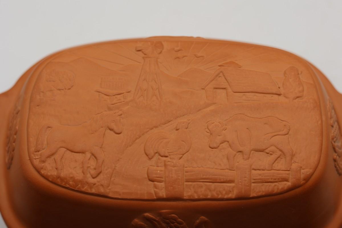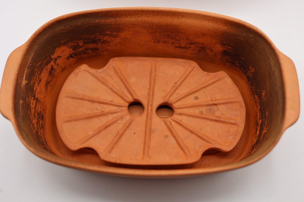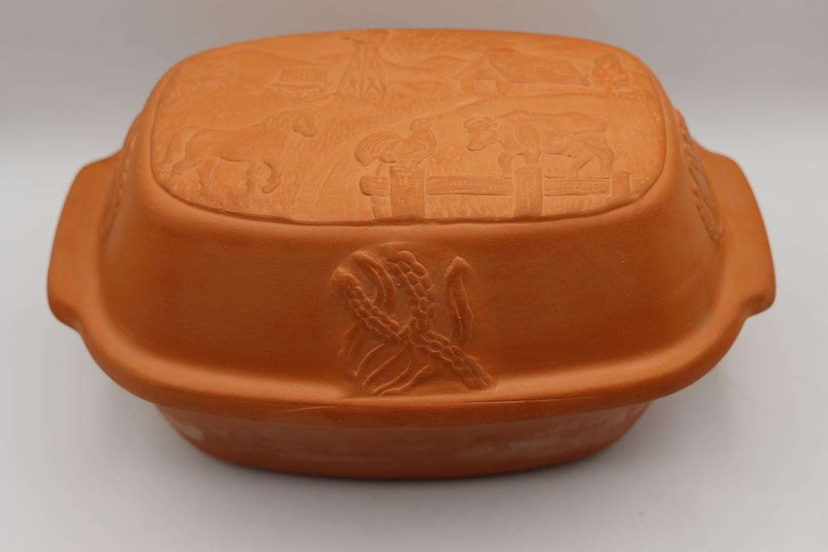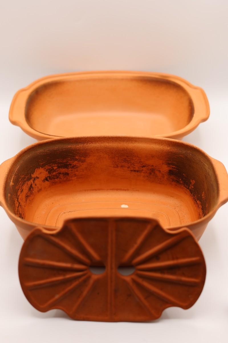 Vintage Terracotta Roasting Pan Cookware W/ Lid