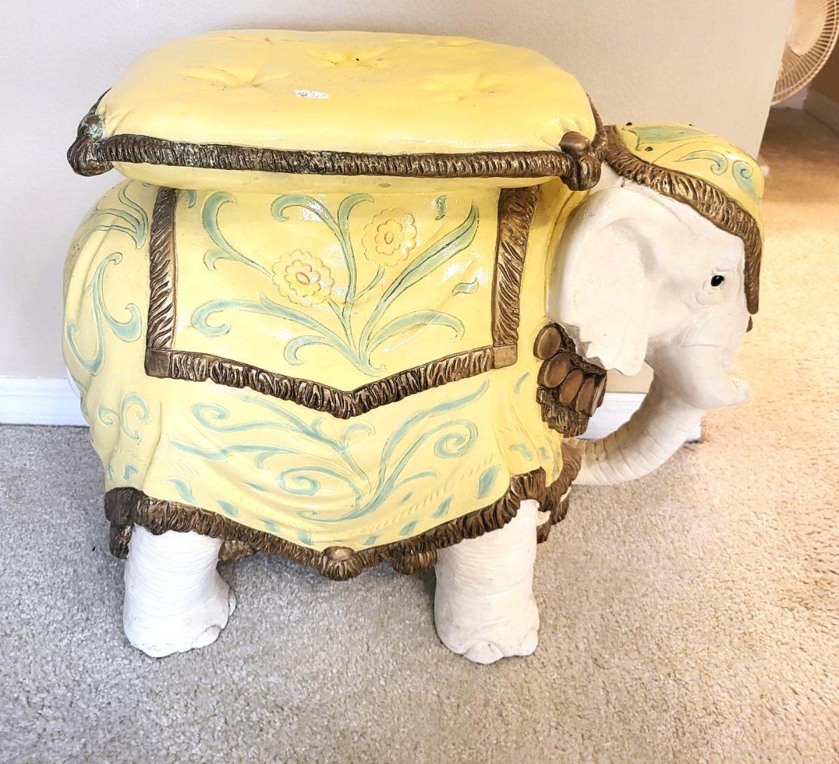 Vintage Terra Cotta Yellow Elephant Garden Stand