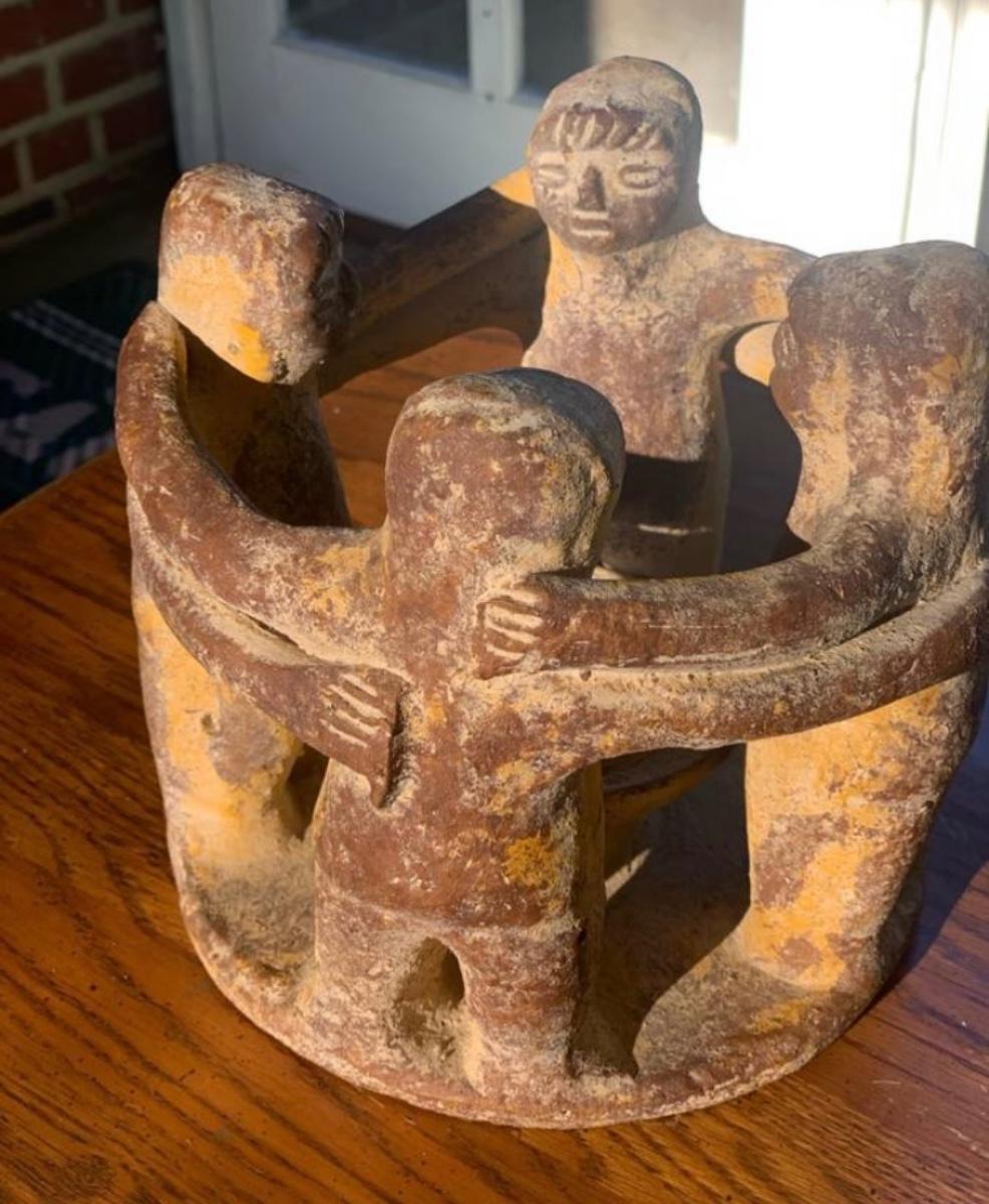Vintage Terracotta Circle of Friends Sculpture - 7" Folk Art Unity Candle Holder