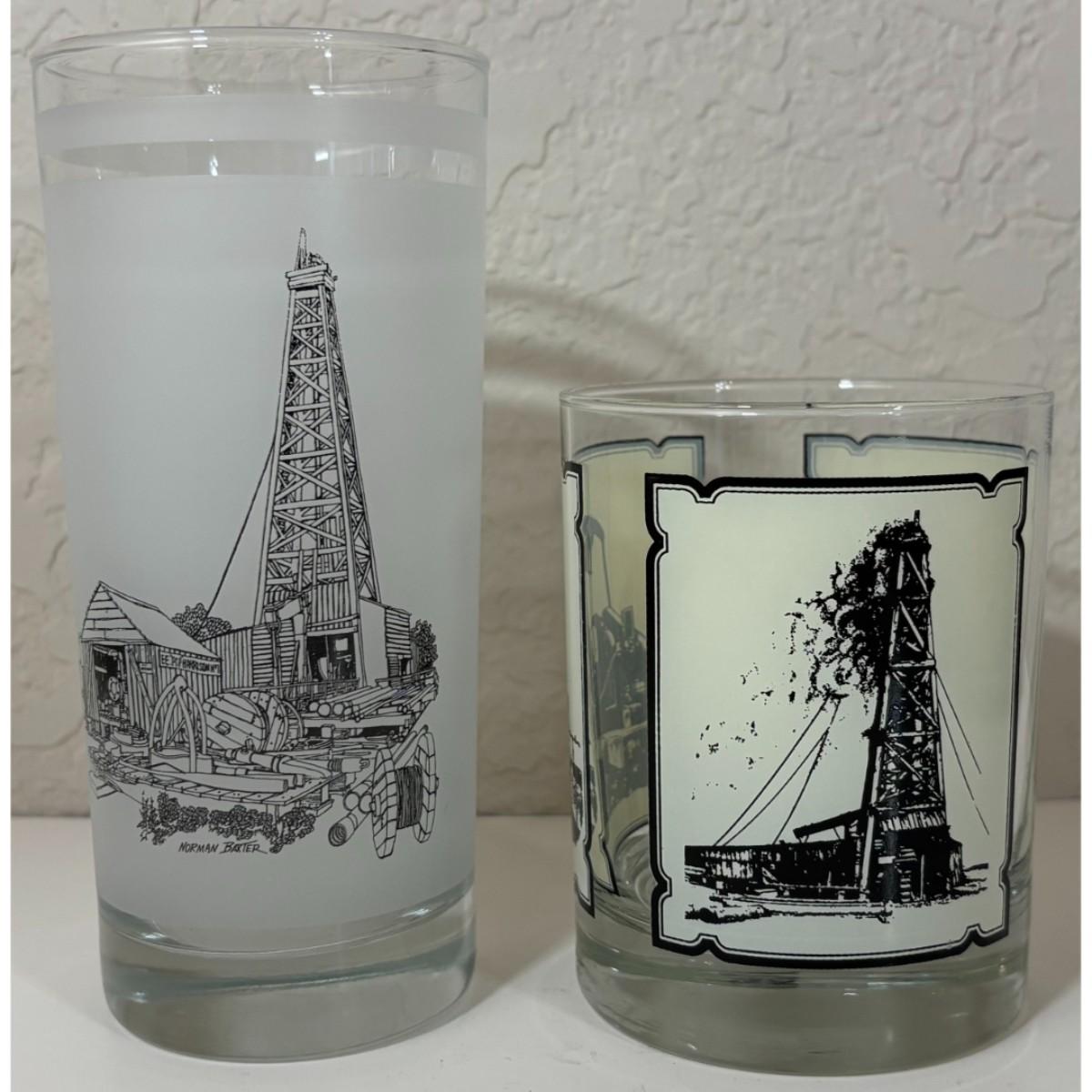 Vintage Texas 150 Anniversary Oil Cable Tool Drilling Rig Glasses Permian Basin