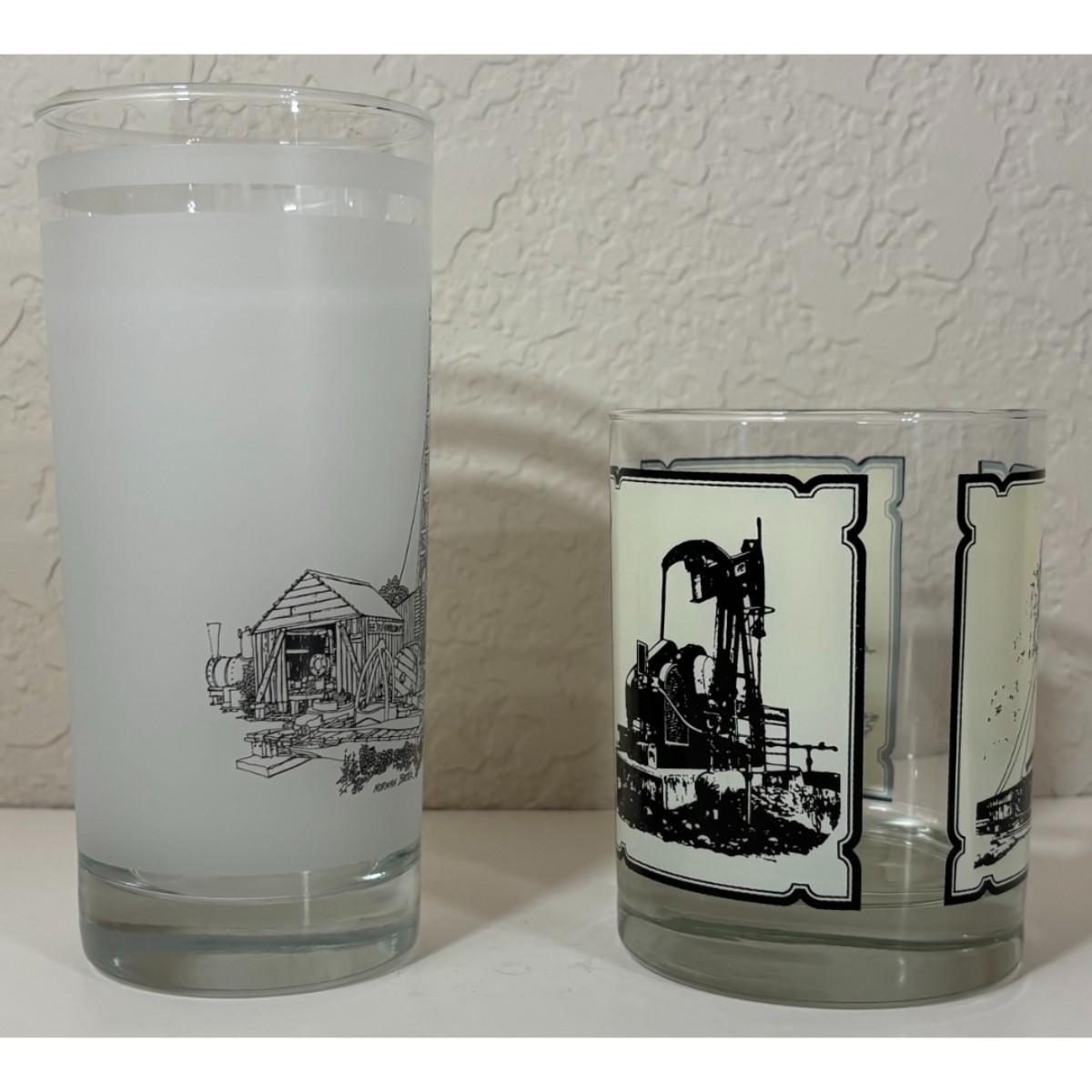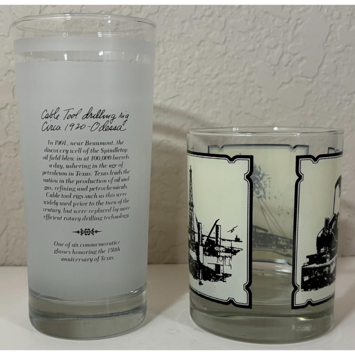 Vintage Texas 150 Anniversary Oil Cable Tool Drilling Rig Glasses Permian Basin