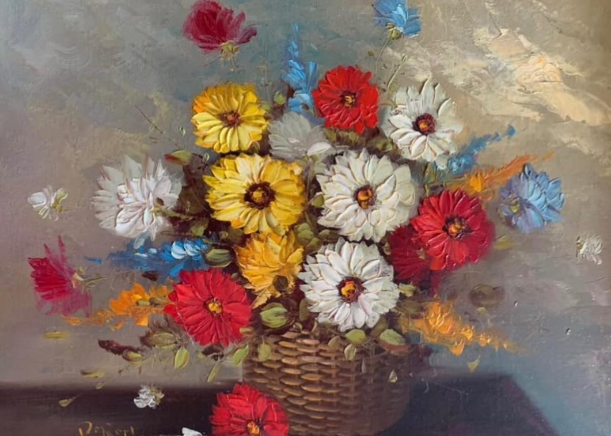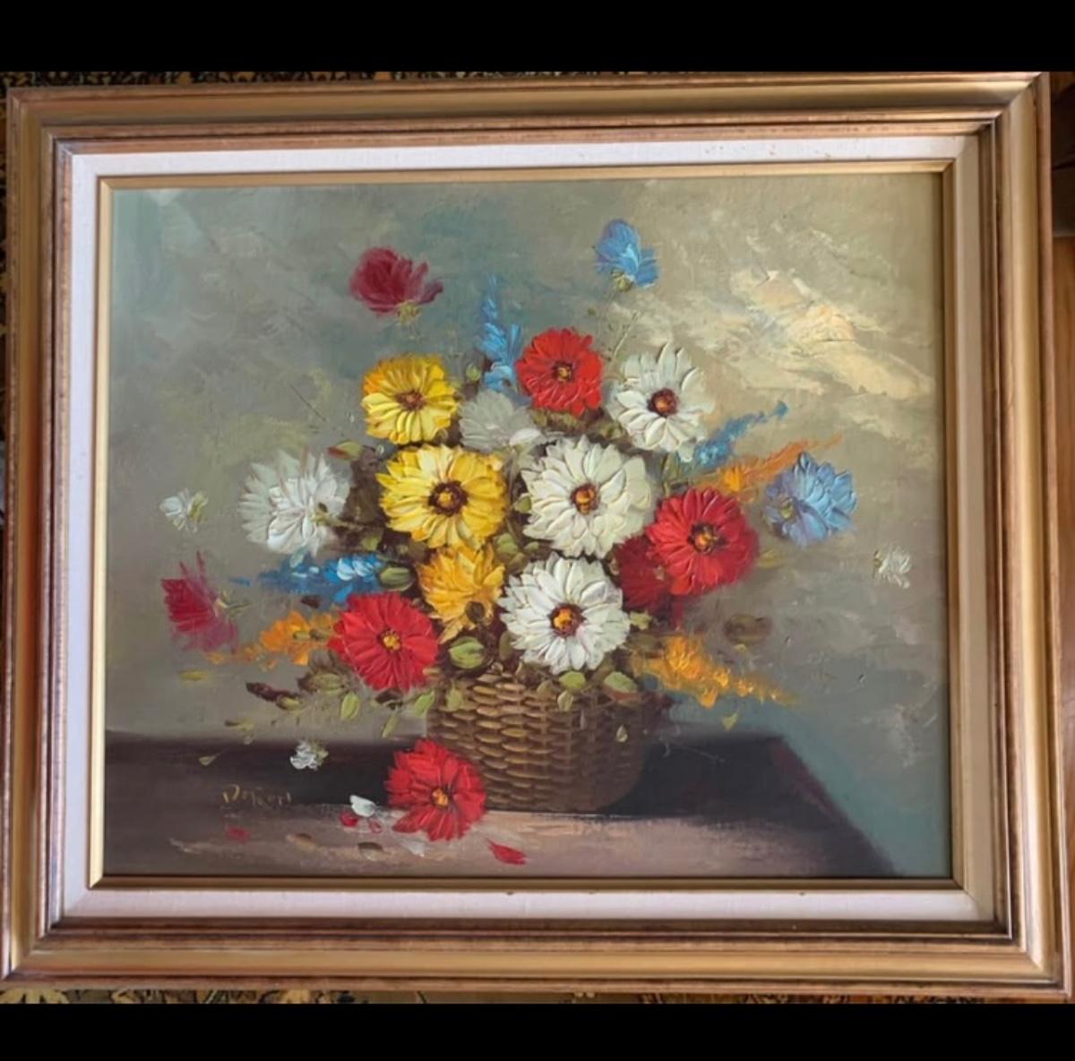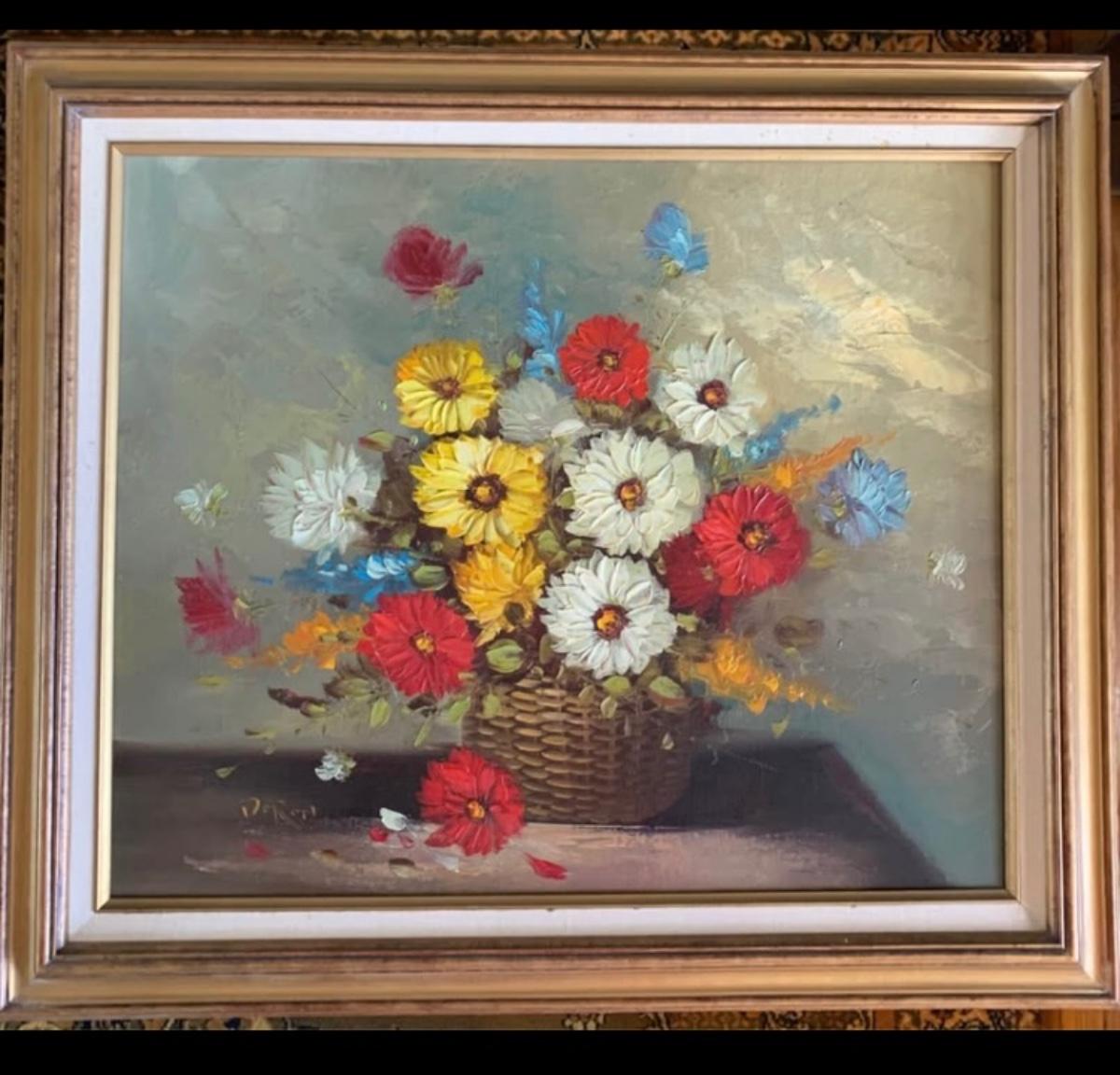 floral painting vintage oil textured palette knife gold frame wall art home decor flowers still life retro artwork