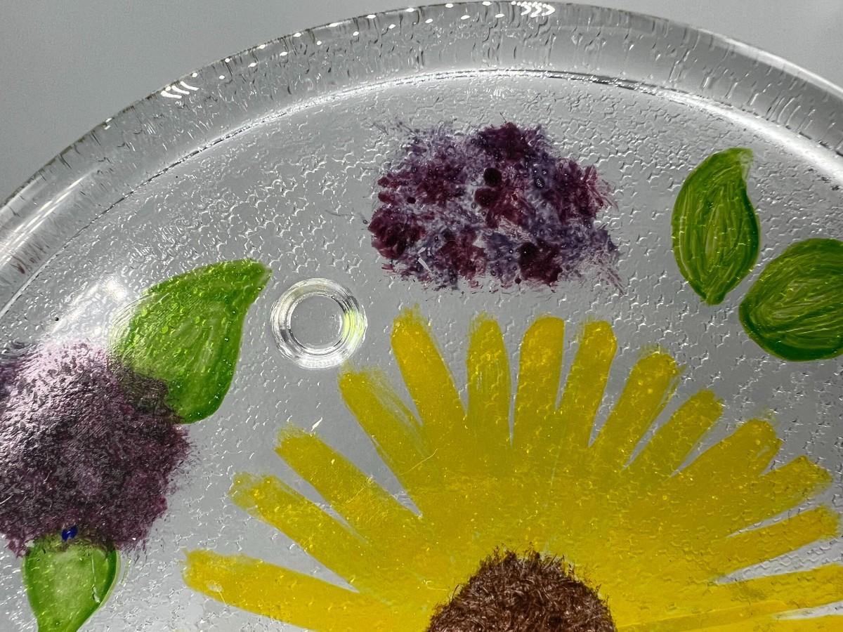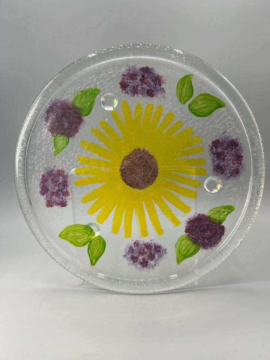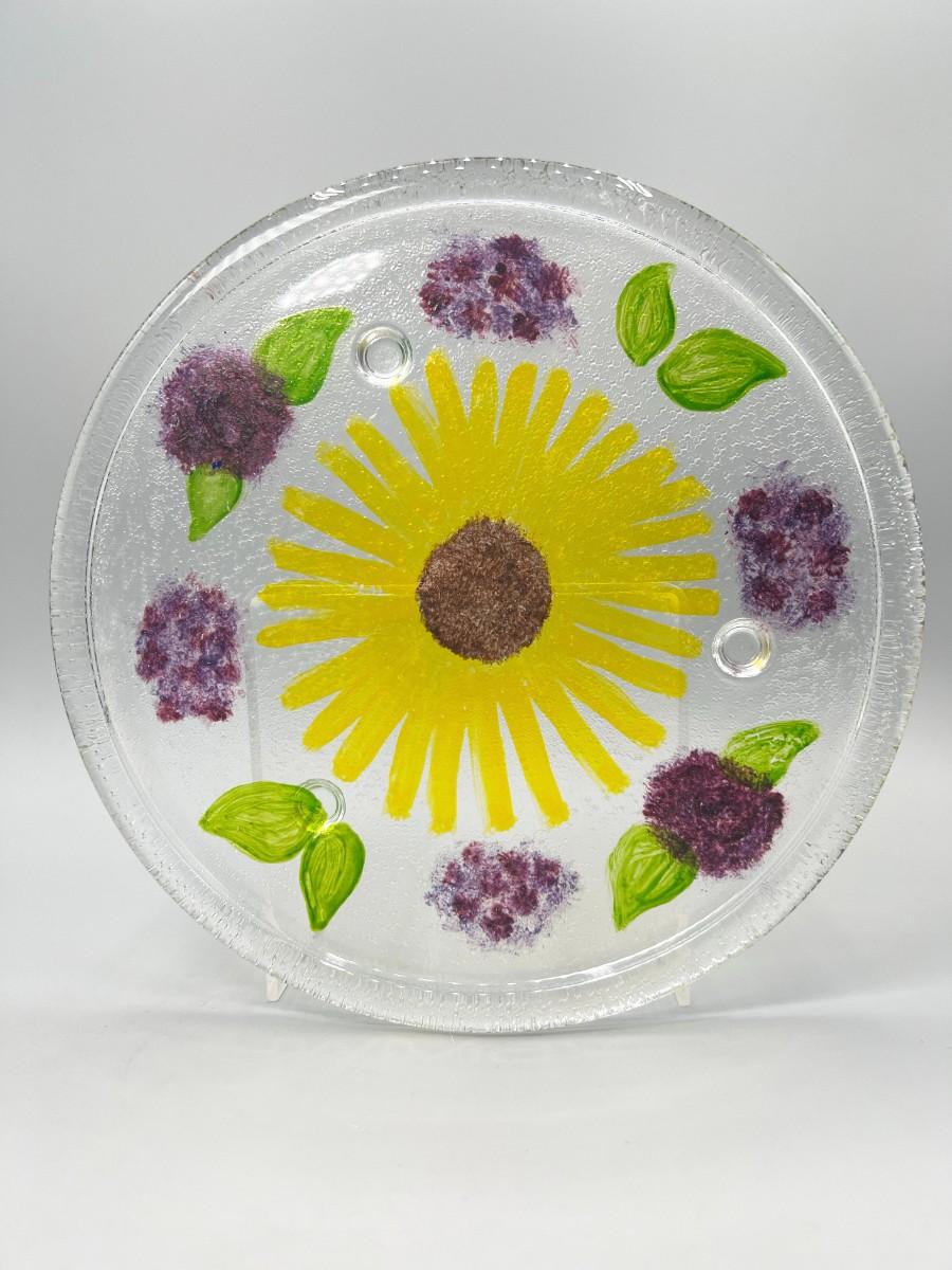 Vintage Textured Glass Sunflower Springtime Plate Tray