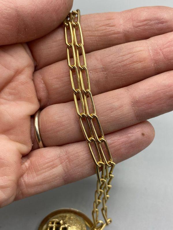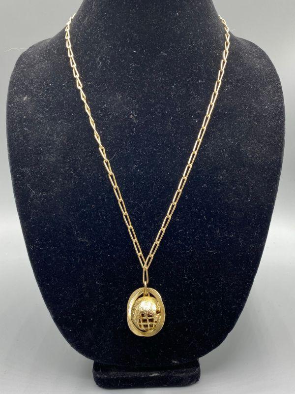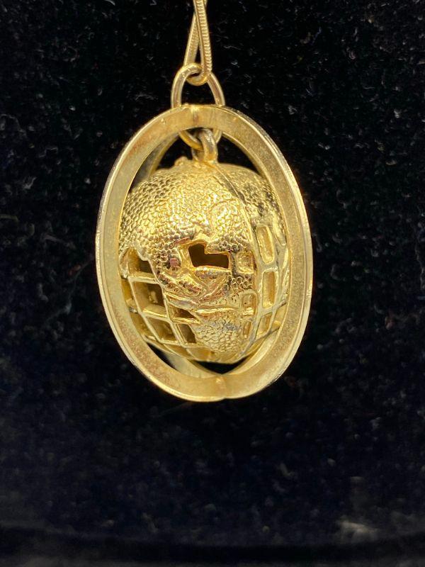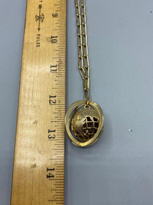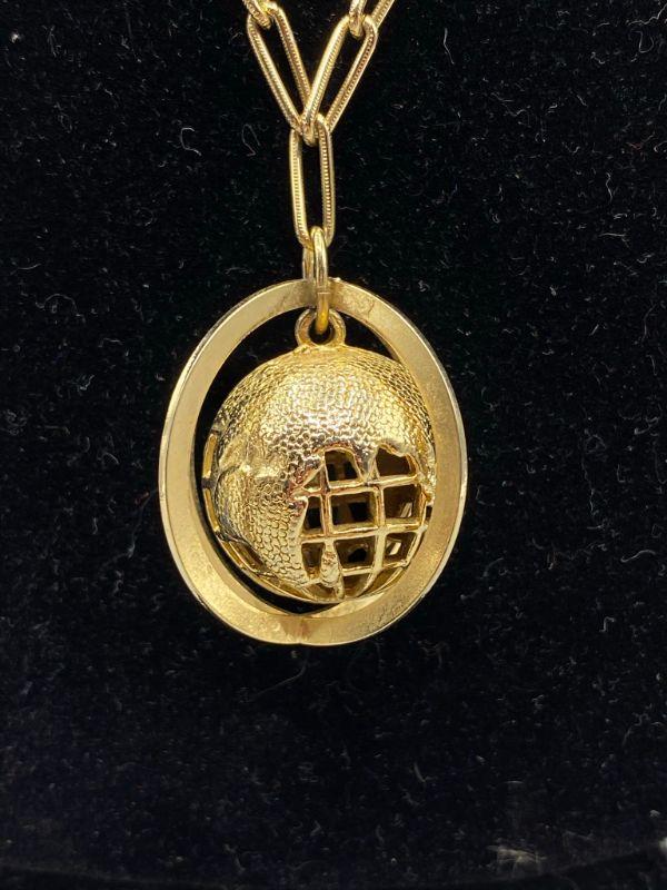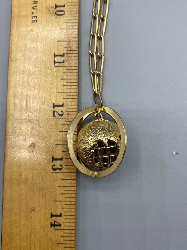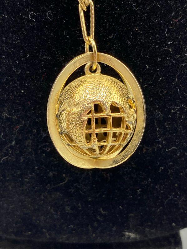 Vintage gold tone texture Earth pendant necklace. 1" pendant on a 12" chain.
