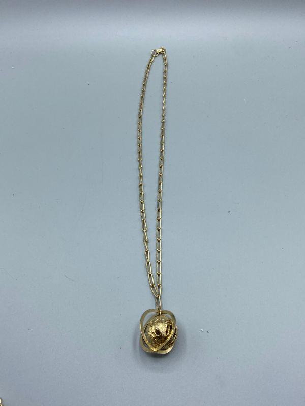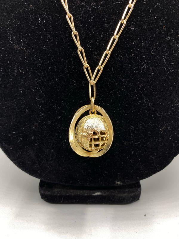 Vintage Textured Gold Tone Planet Pendant Necklace YD#011-1120-00130