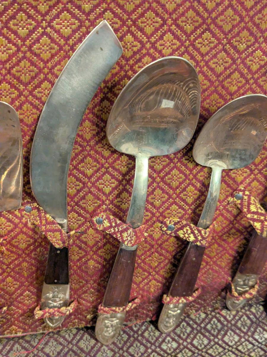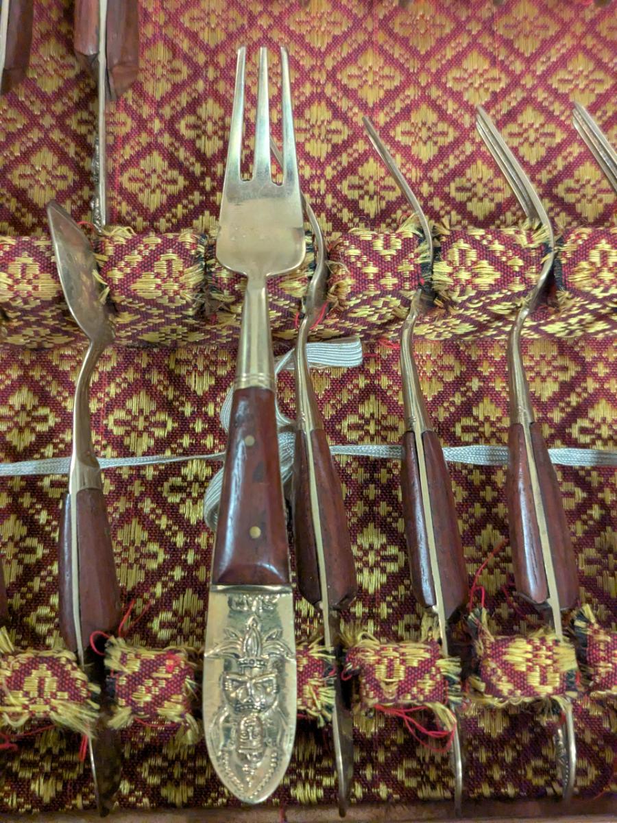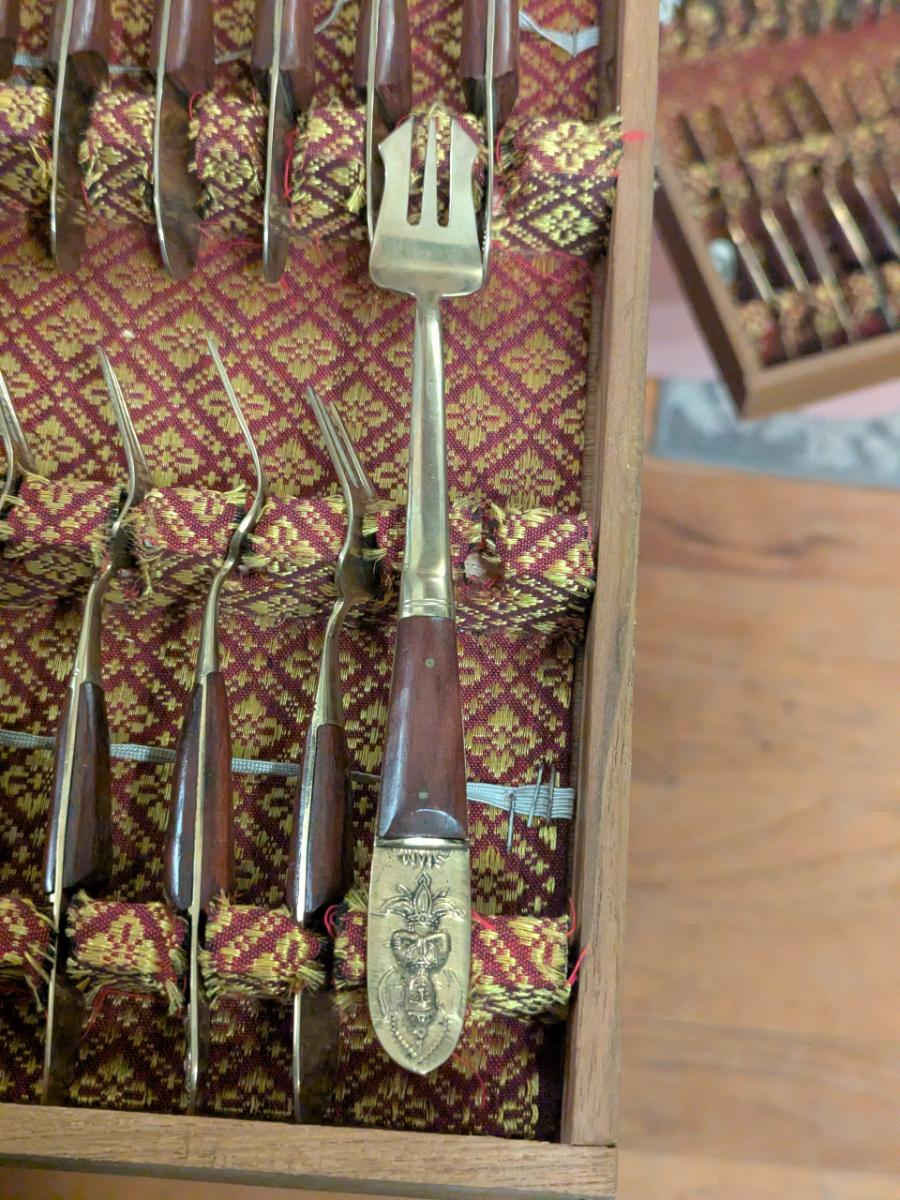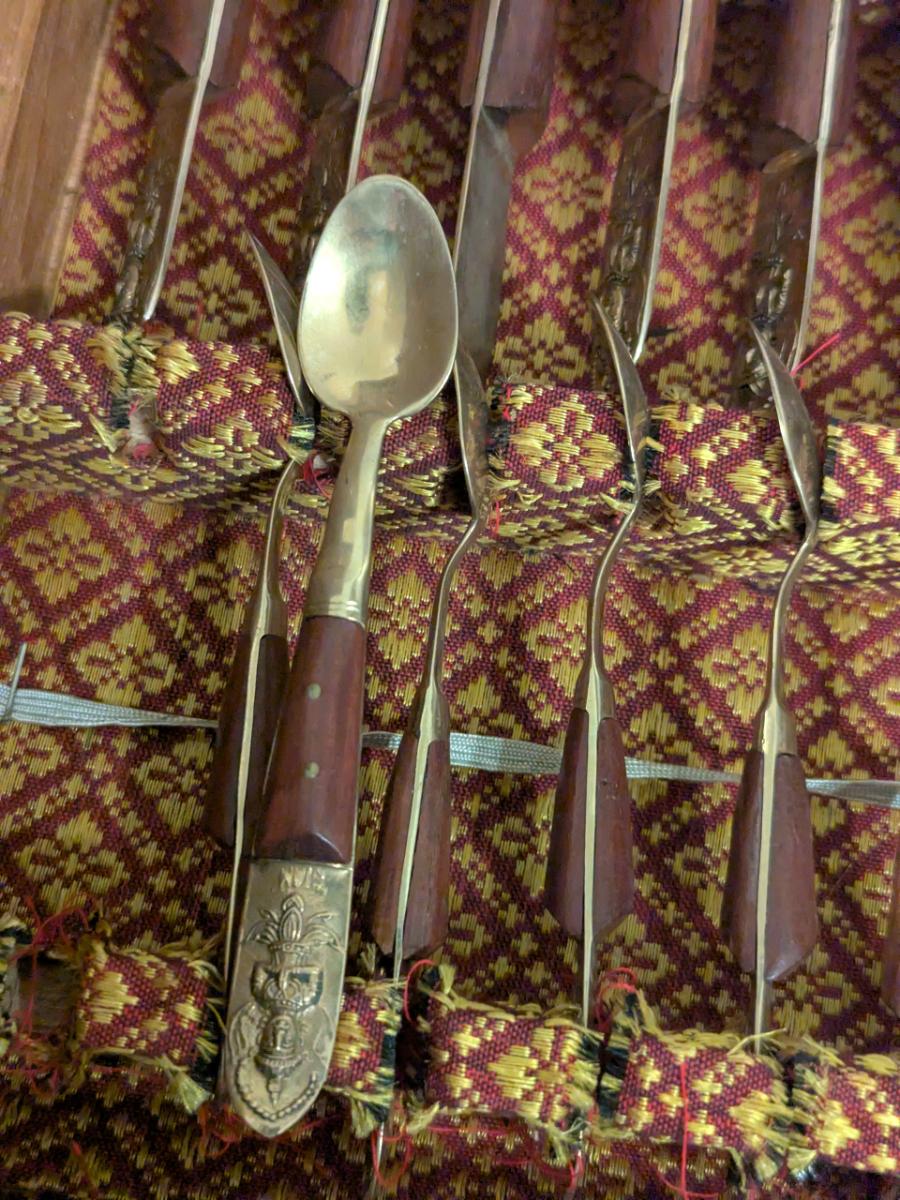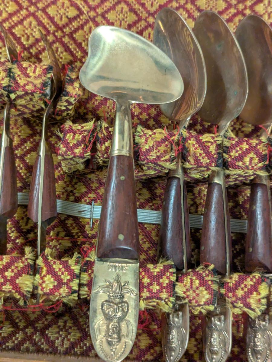 vintage Thai Siam Brass flatware set with rosewood handles in Storage box