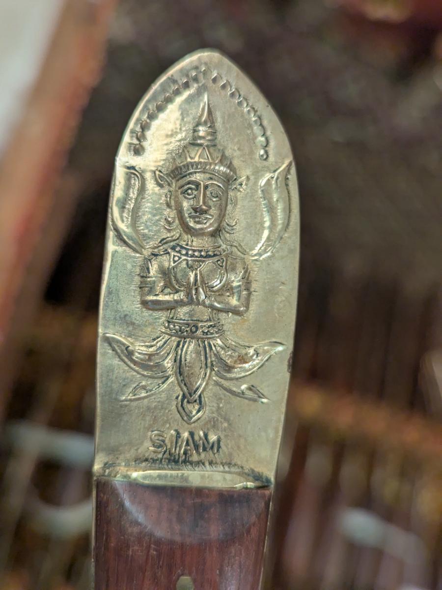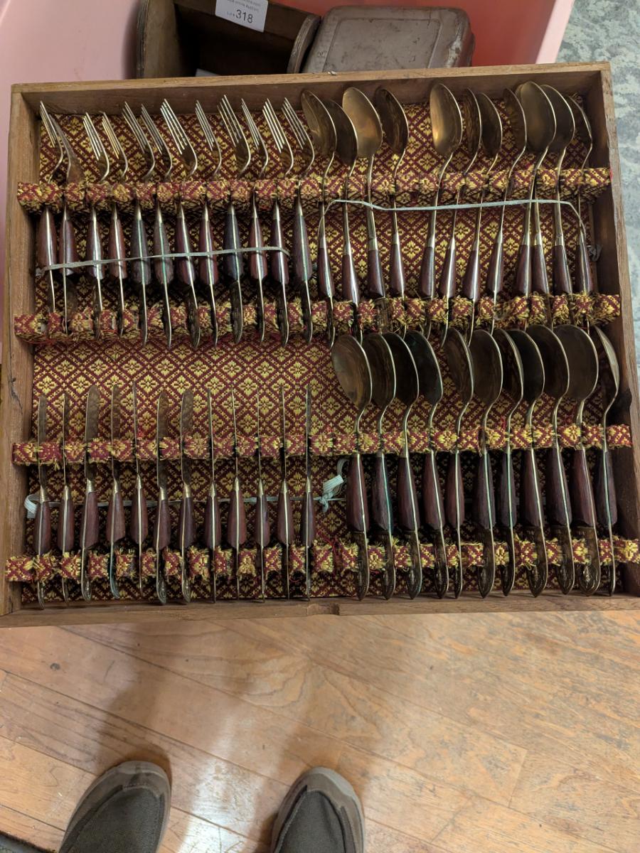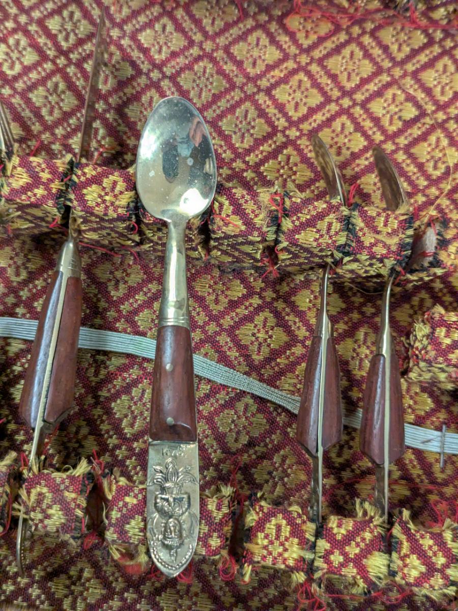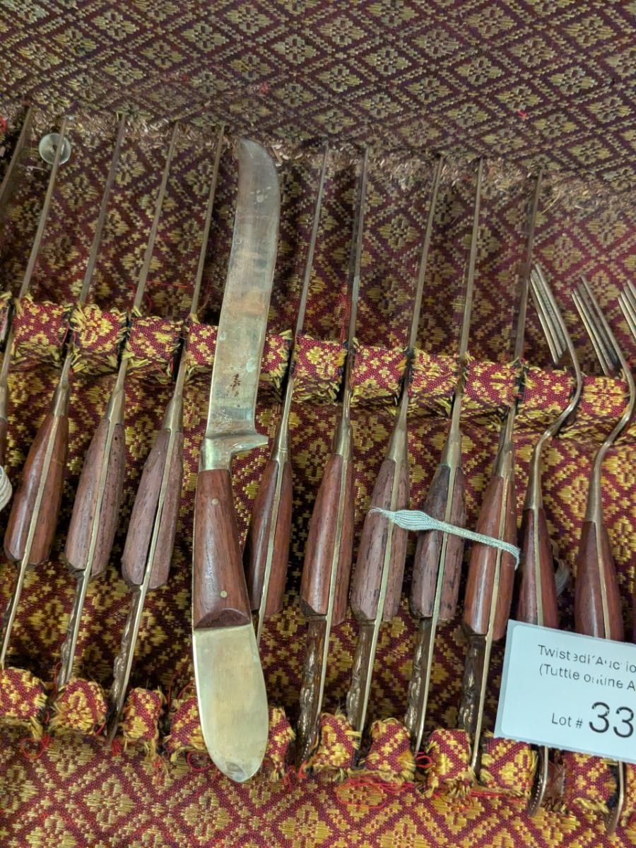 vintage Thai Siam Brass flatware set with rosewood handles in Storage box