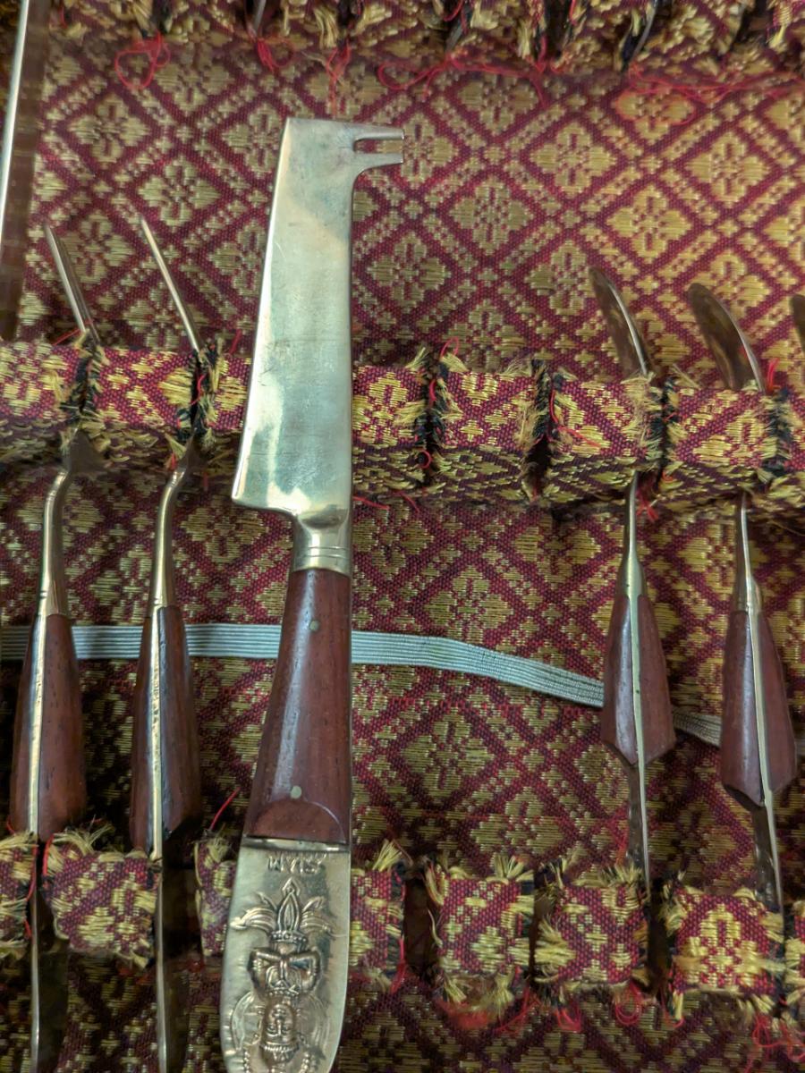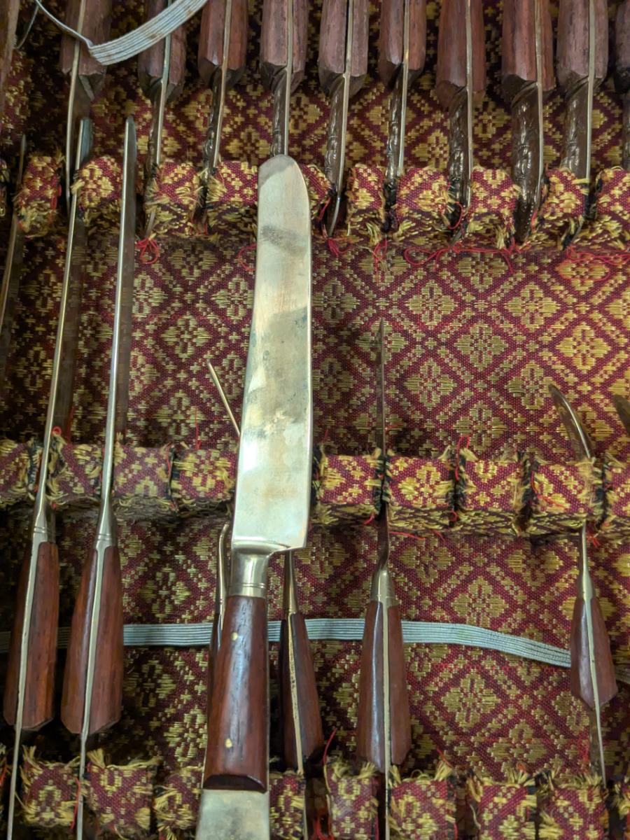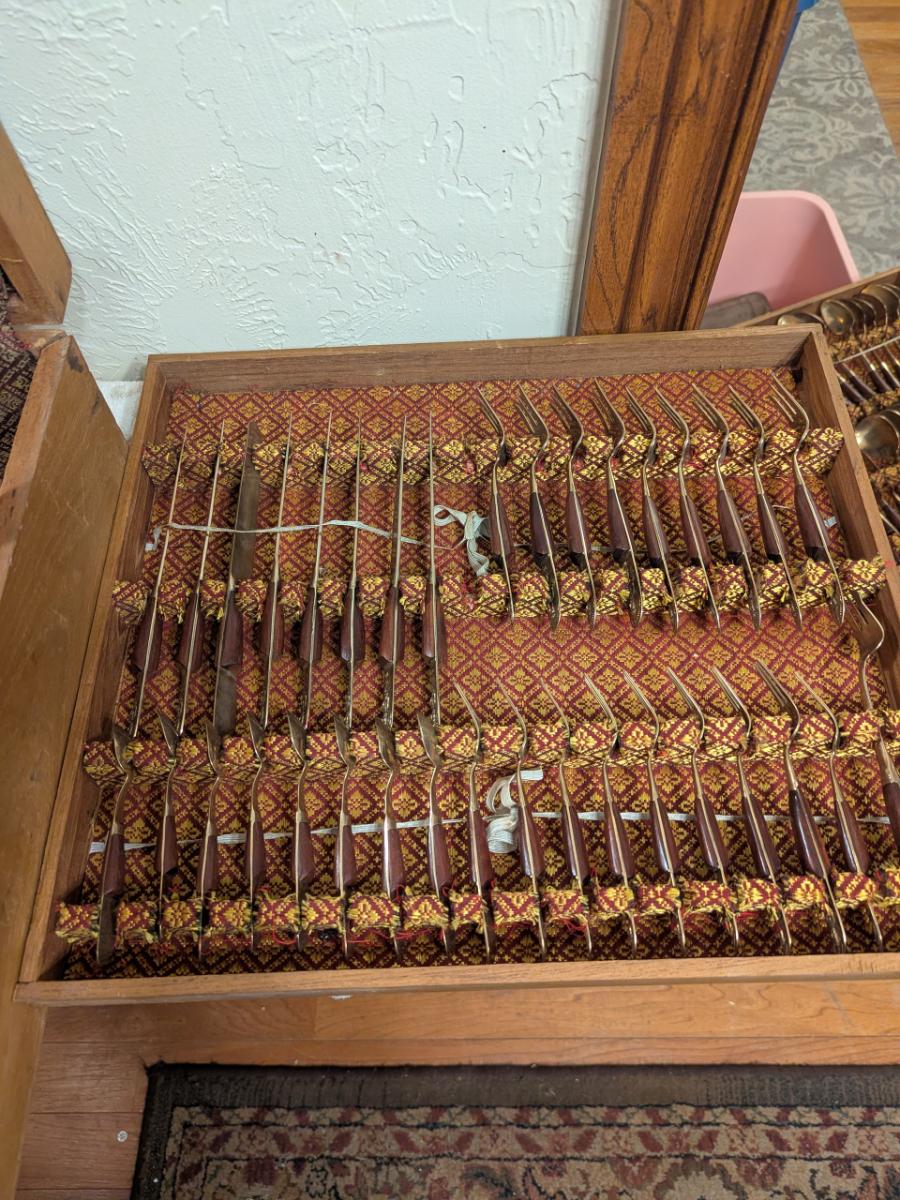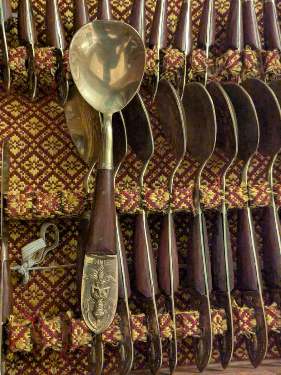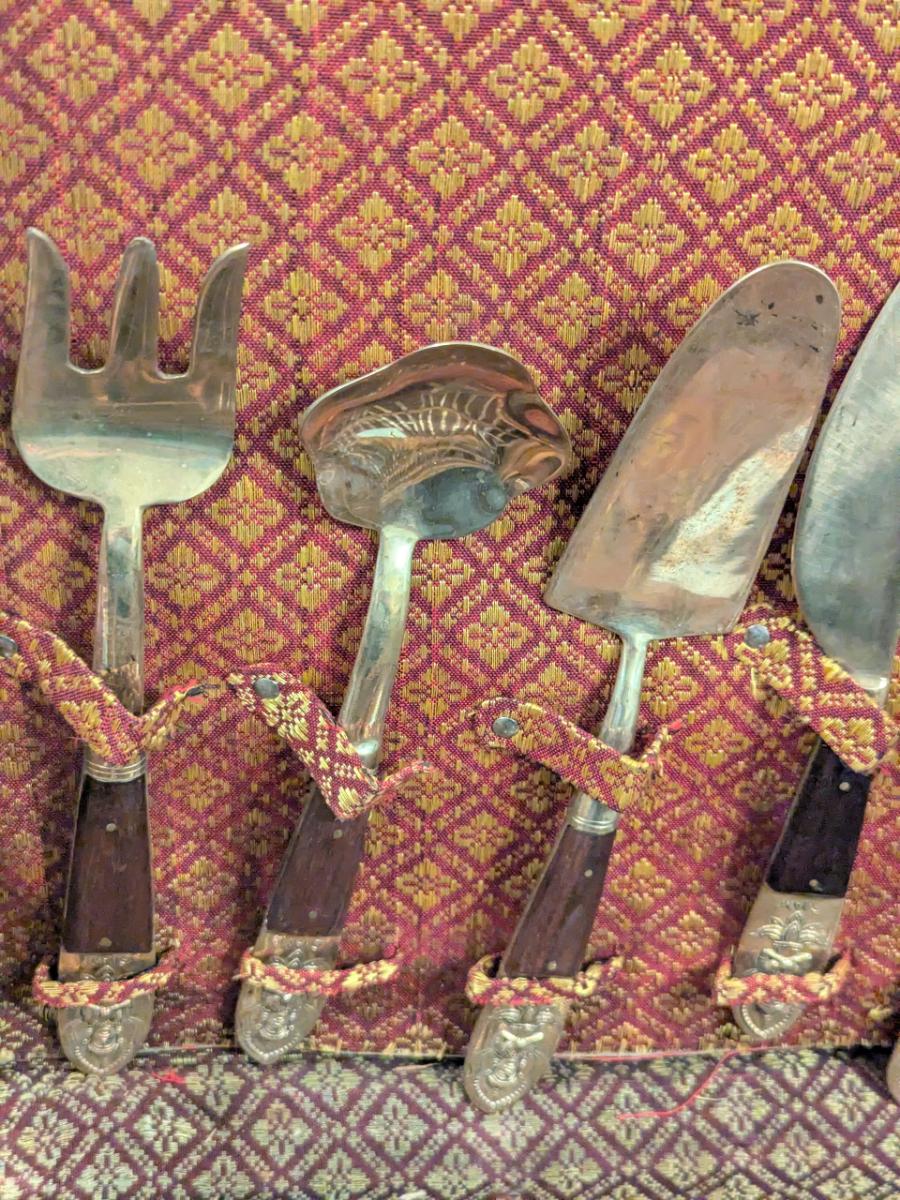 vintage Thai Siam Brass flatware set with rosewood handles in Storage box