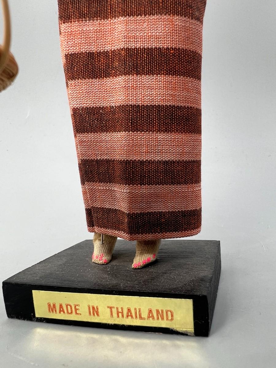 Vintage Thailand Souvenir Handmade Cloth Doll Women Farmer Merchant Carrying Fruits Figurine