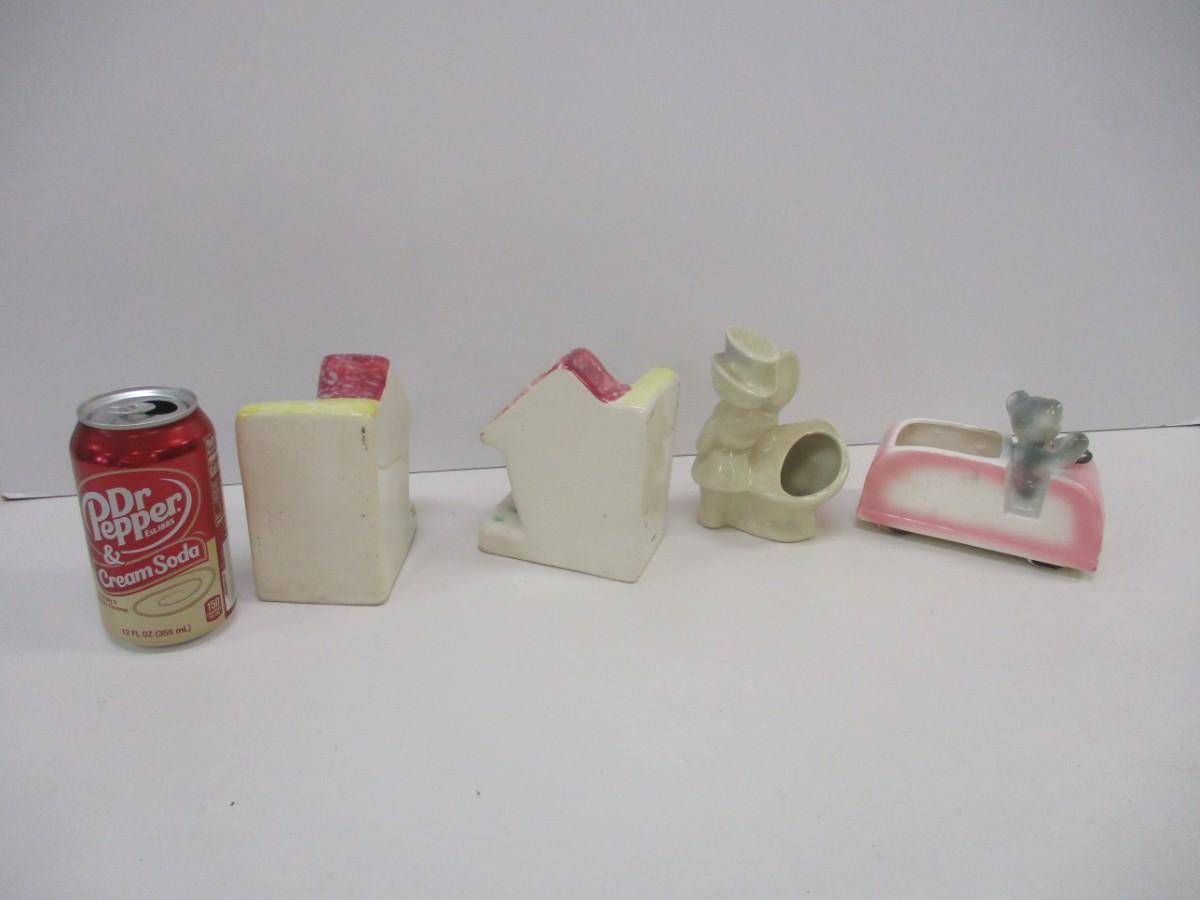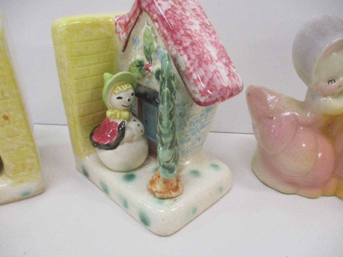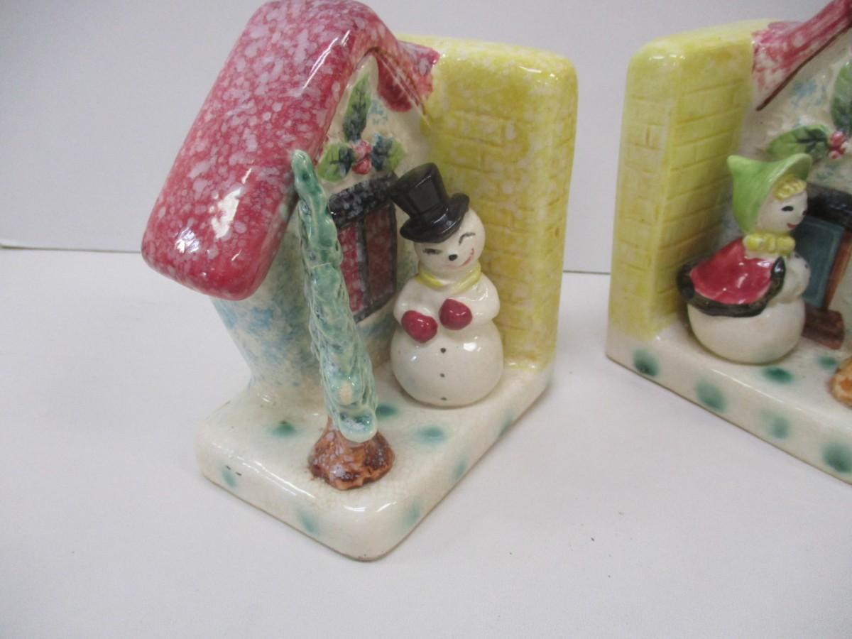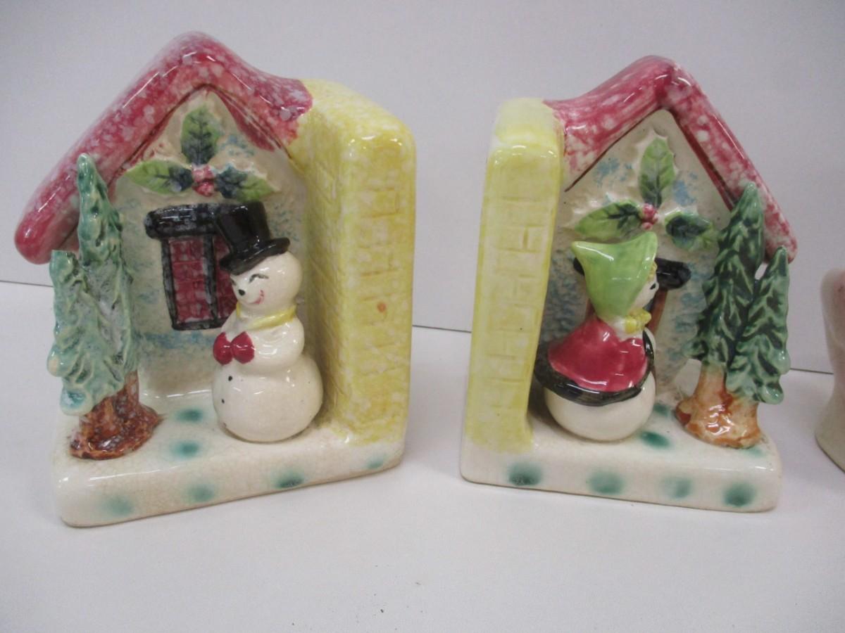 Rubens Bear Pottery Vintage Pottery Couple Vintage Thames Japan Christmas Snowman Bookends Hand Painted Book Ends