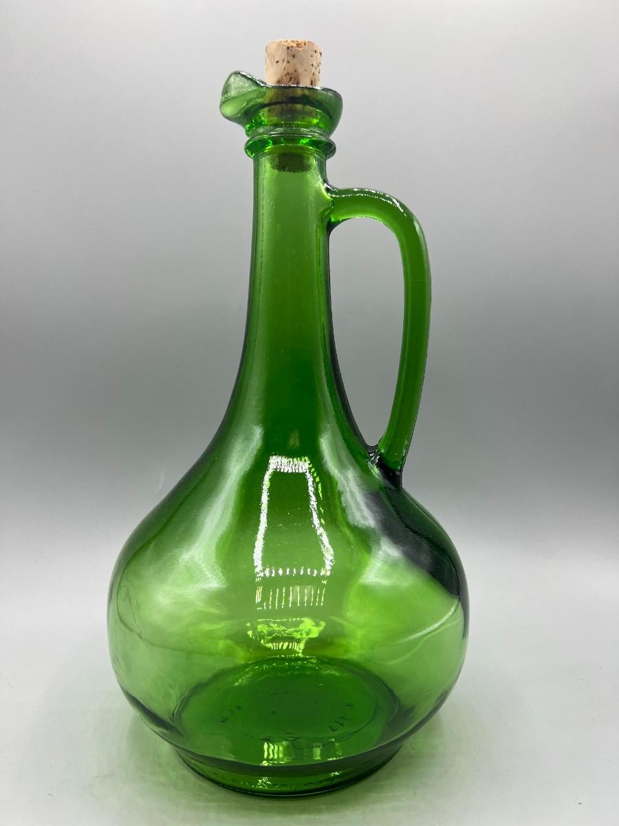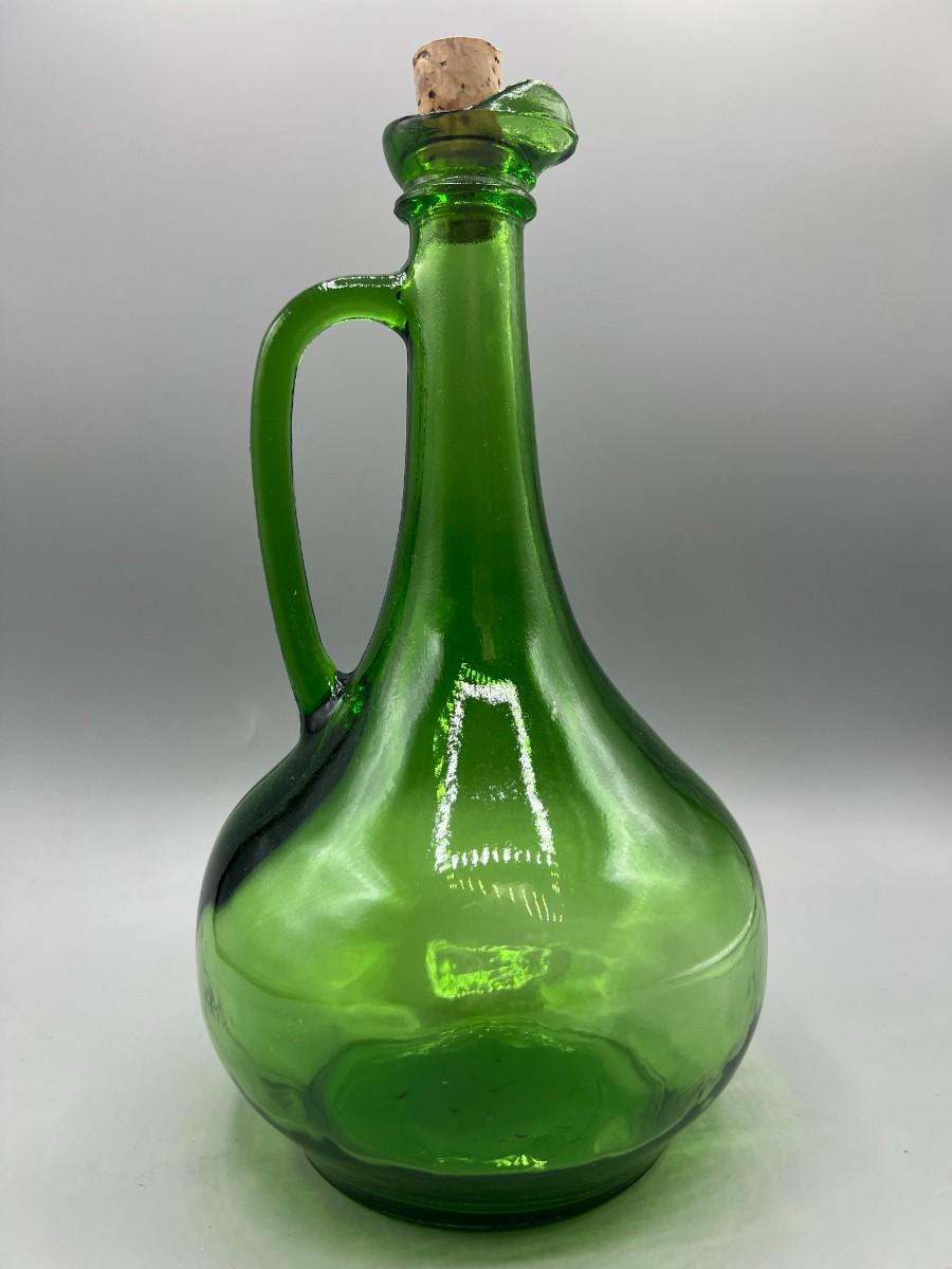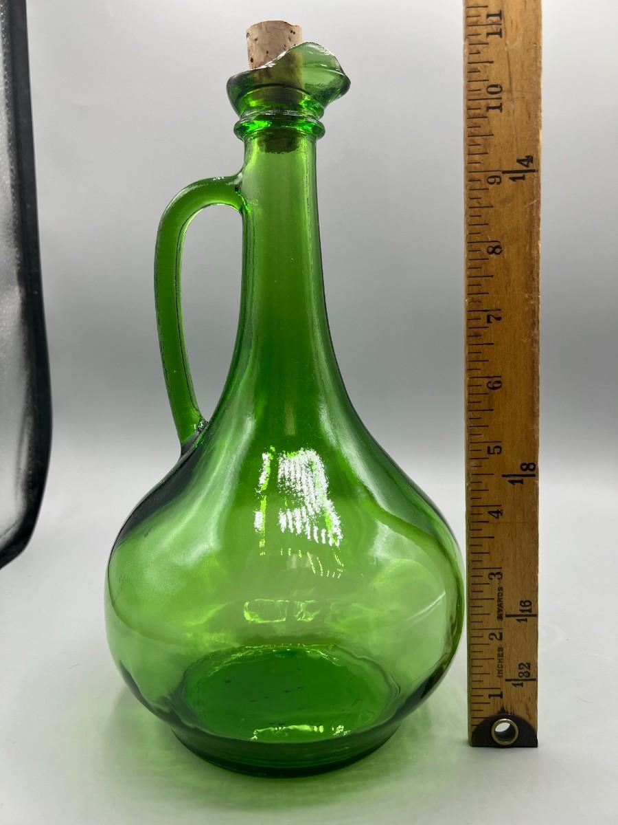 Vintage Thatcher Glass Green Glass Long Neck Wine Vino Corked Bottle Decanter