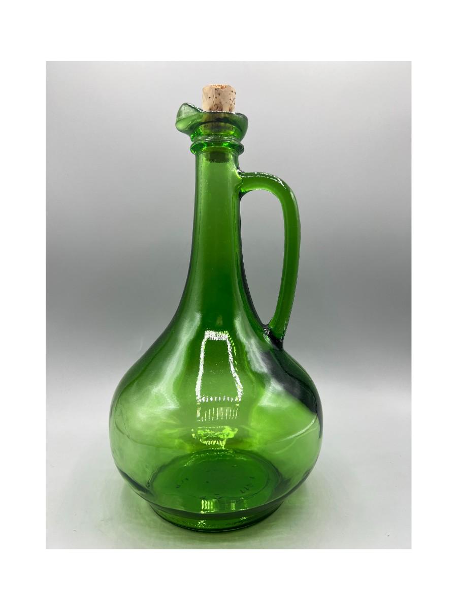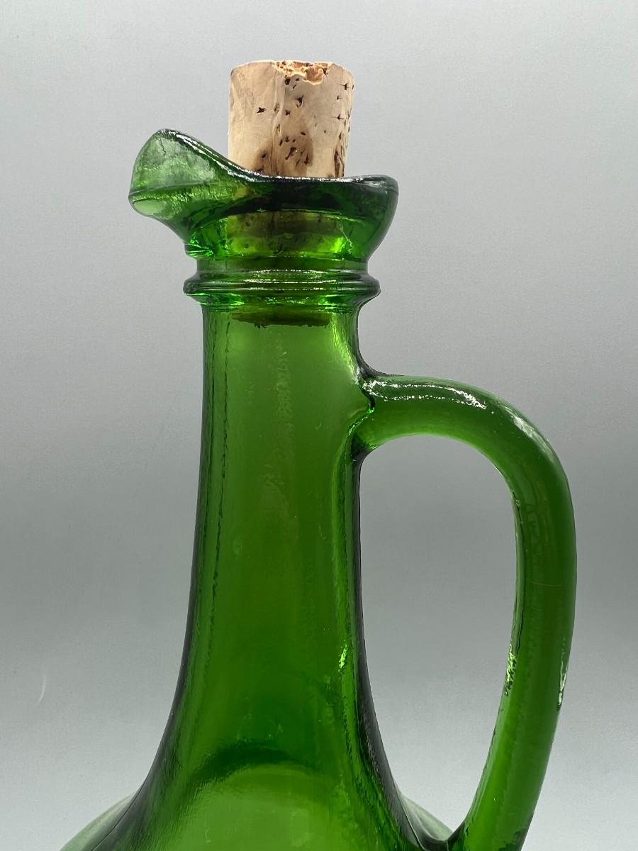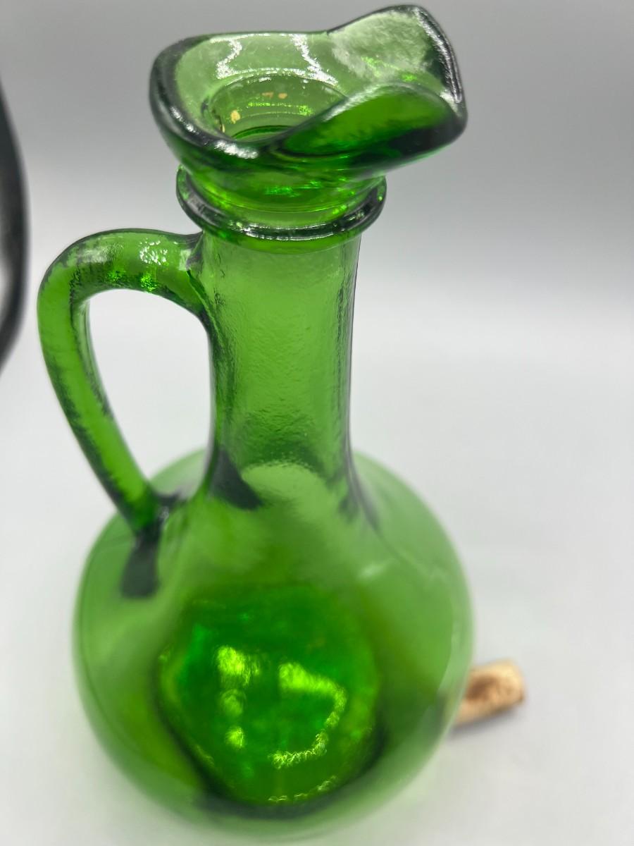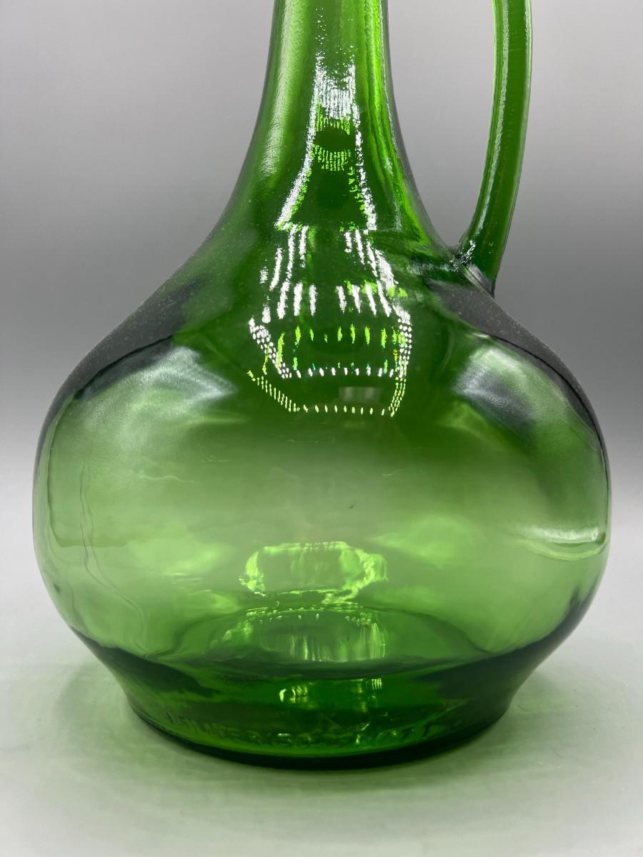 Vintage Thatcher Glass Green Glass Long Neck Wine Vino Corked Bottle Decanter